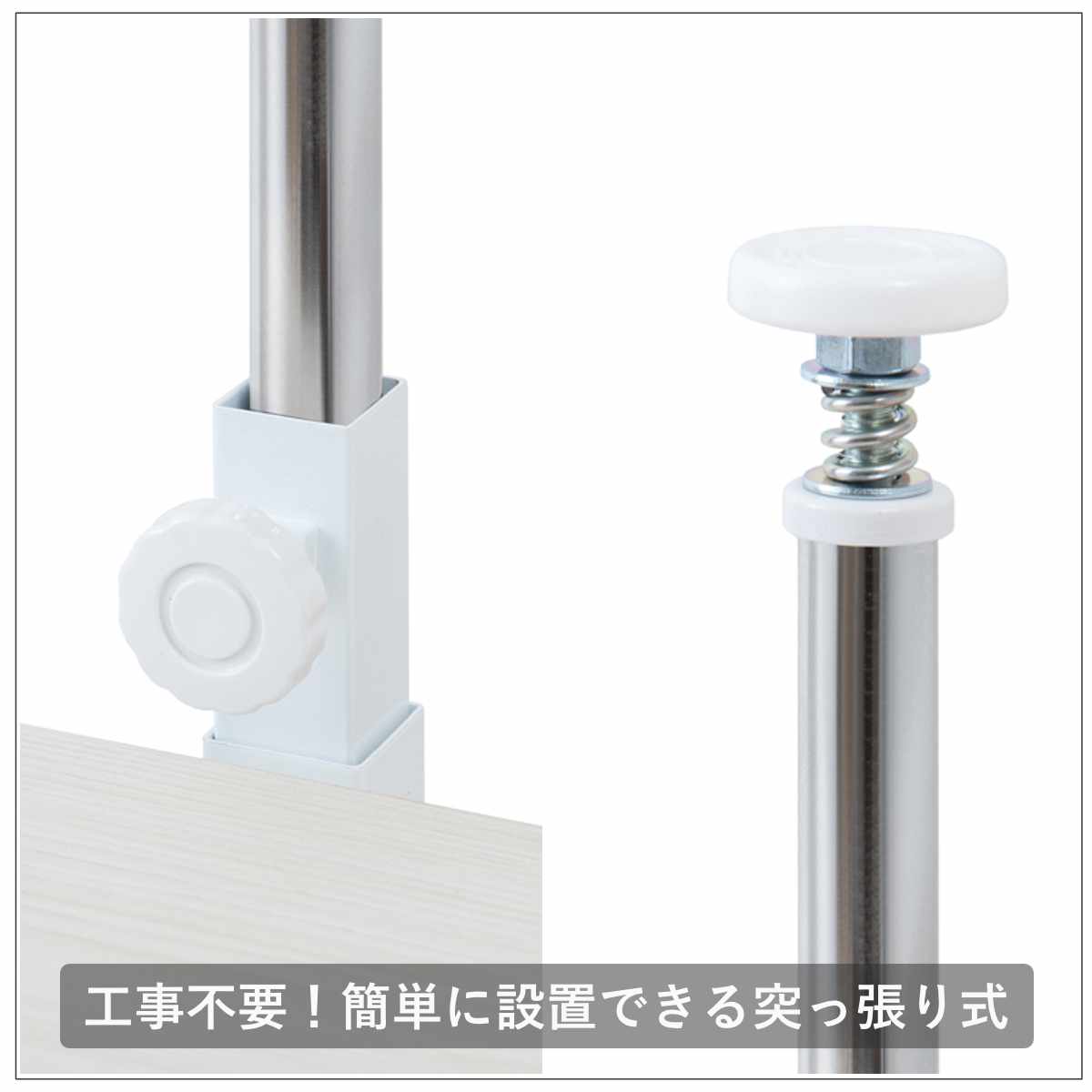 突っ張り部分と安定感のある脚部で、横揺れや転倒を防ぎます。