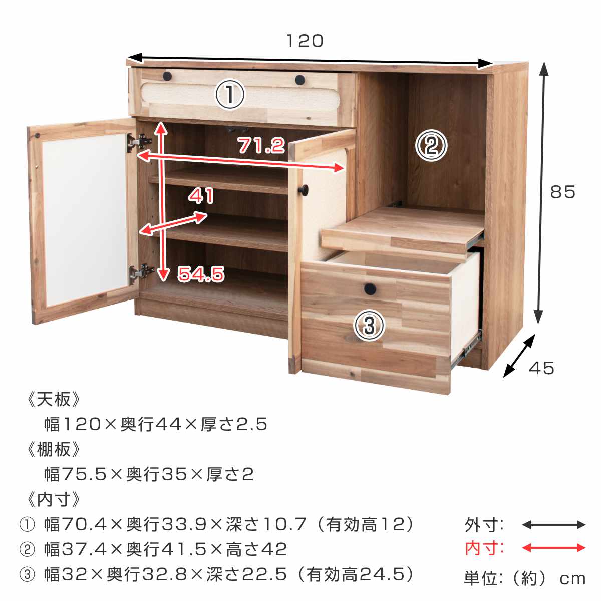 - 約幅120×奥行45×高さ85cm