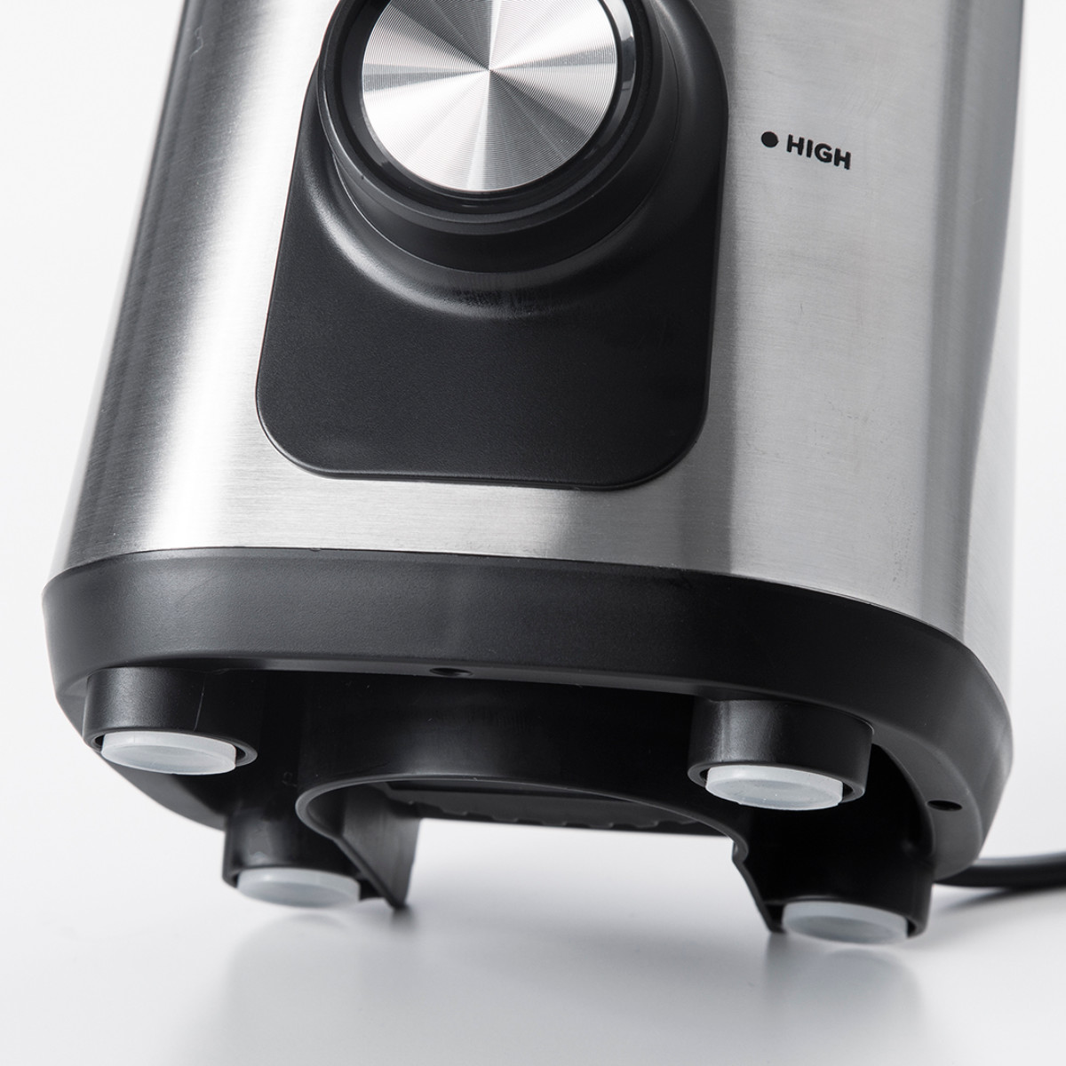 スイッチは、2段階スピードの切り替えとパルスの設定ができます。パルスはMAXスピードを瞬時に作動でき、断続的に使用するとその勢いで材料がしっかり混ざります。