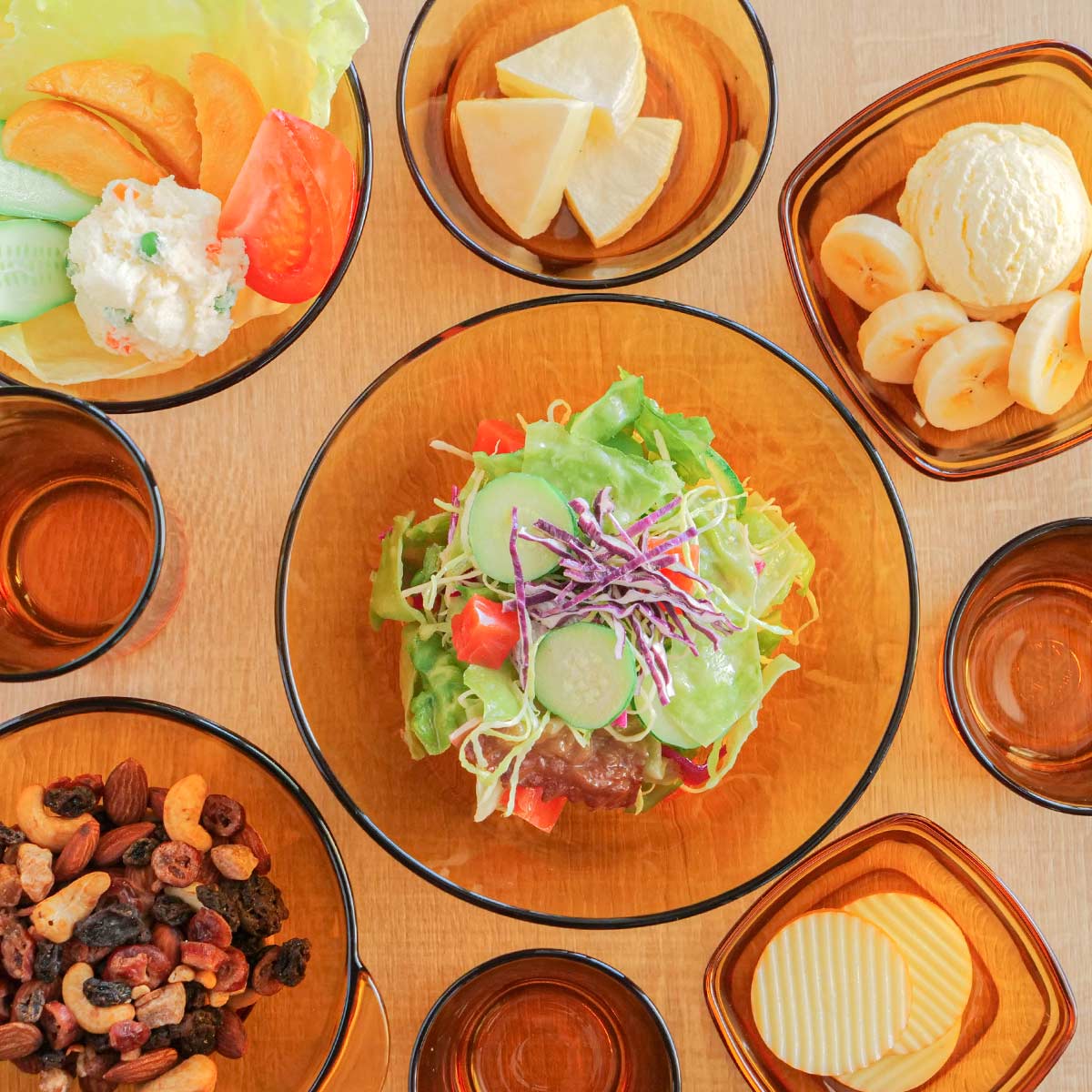 世界で始めて強化ガラス製タンブラーとして発売されて以降、長い間人々に慕われ続けている食器ブランド、デュラレックス。ご家庭だけでなく飲食店にも広く使われ、そのシンプルで飽きのこないデザインは世界中で愛されています。アンバーシリーズの特長でもある色鮮やかな琥珀色は、お料理を美しく彩り、食卓に優しく馴染んでくれます。