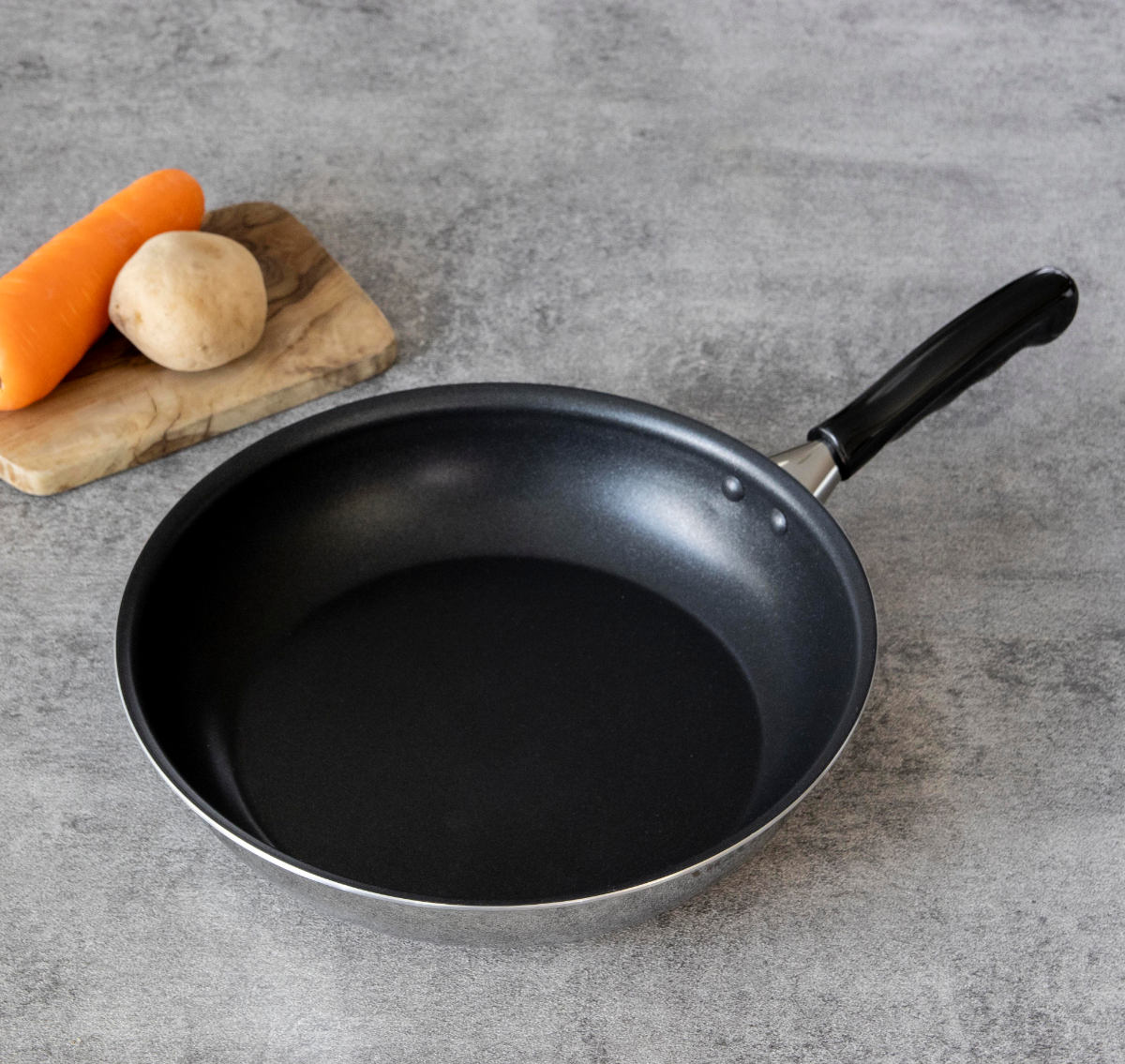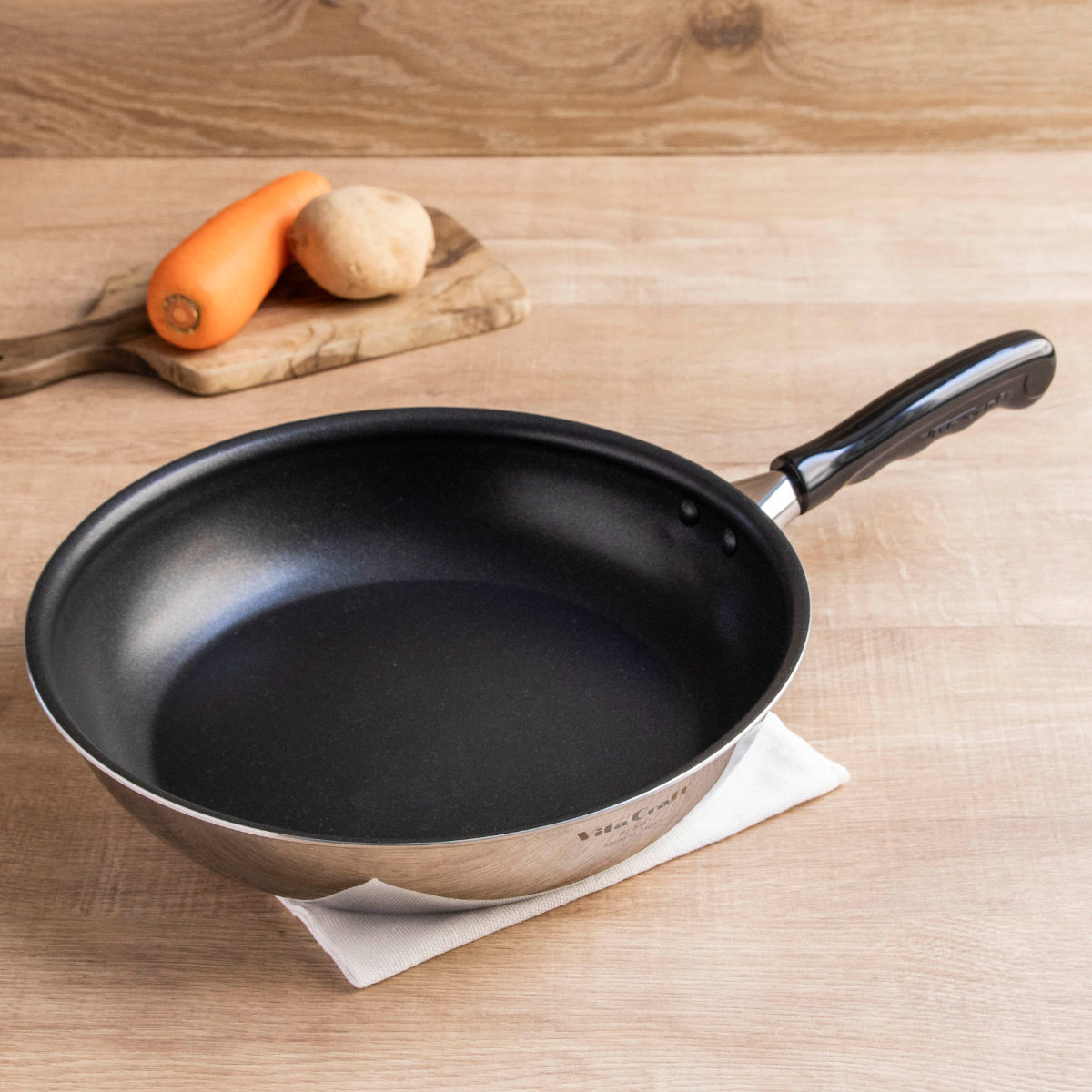 独特のくぼみのあるハンドルが手にフィットし、ストレスを感じることなく調理できます。