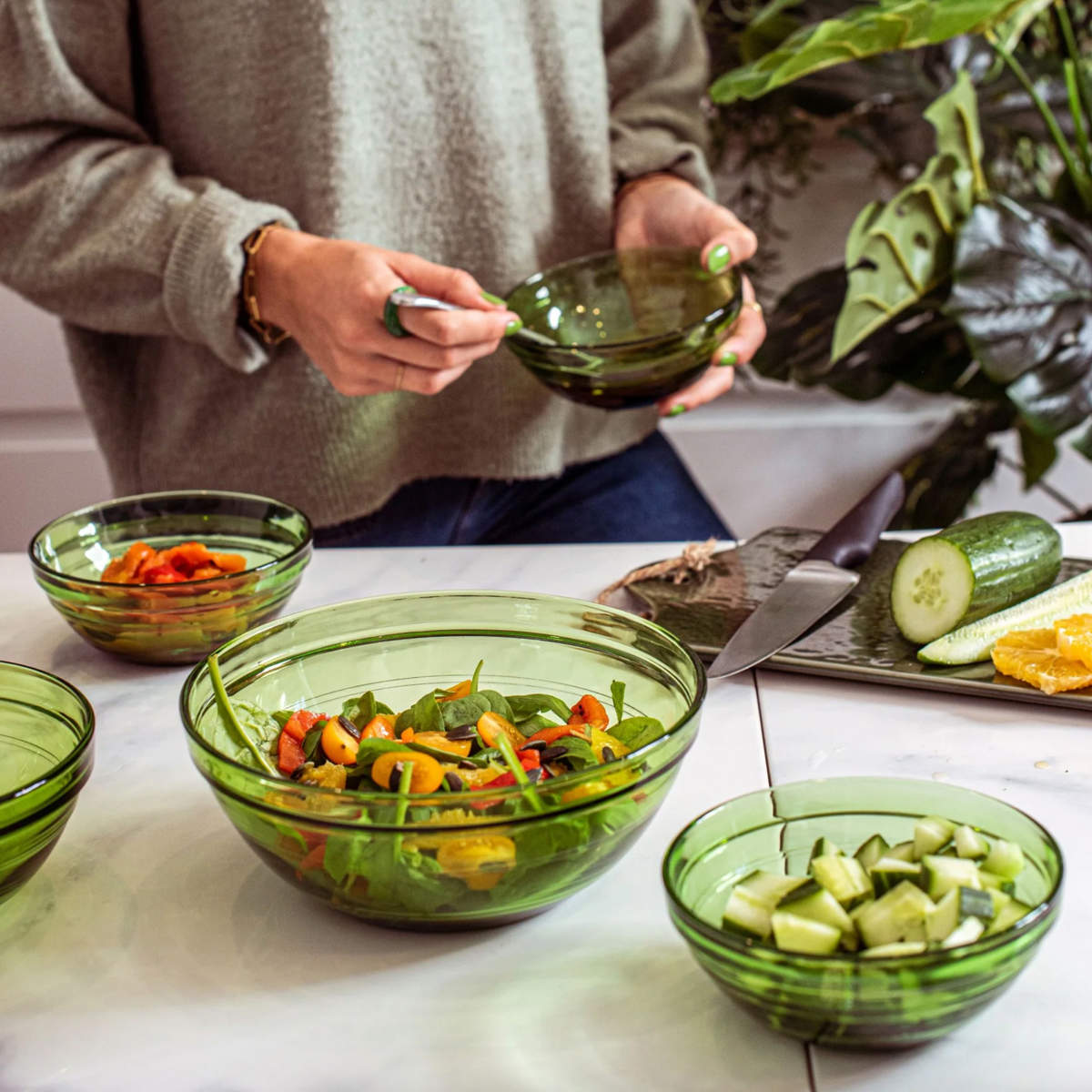 フランスの有名なグラスウェアブランドDURALEX社のボウルです。シェアするサラダや1人分の素麺や蕎麦などの盛り付けにちょうど良いサイズです。耐熱のため、下ごしらえから調理までこなせ、出来立てをそのまま食卓にサーブできます。