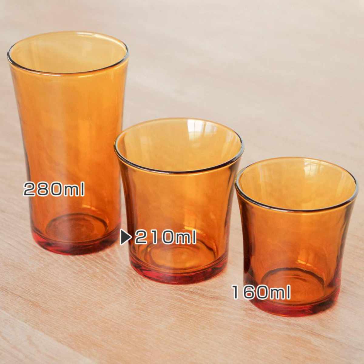 透明感のある美しいガラス製グラス 210ml 同色6個セット