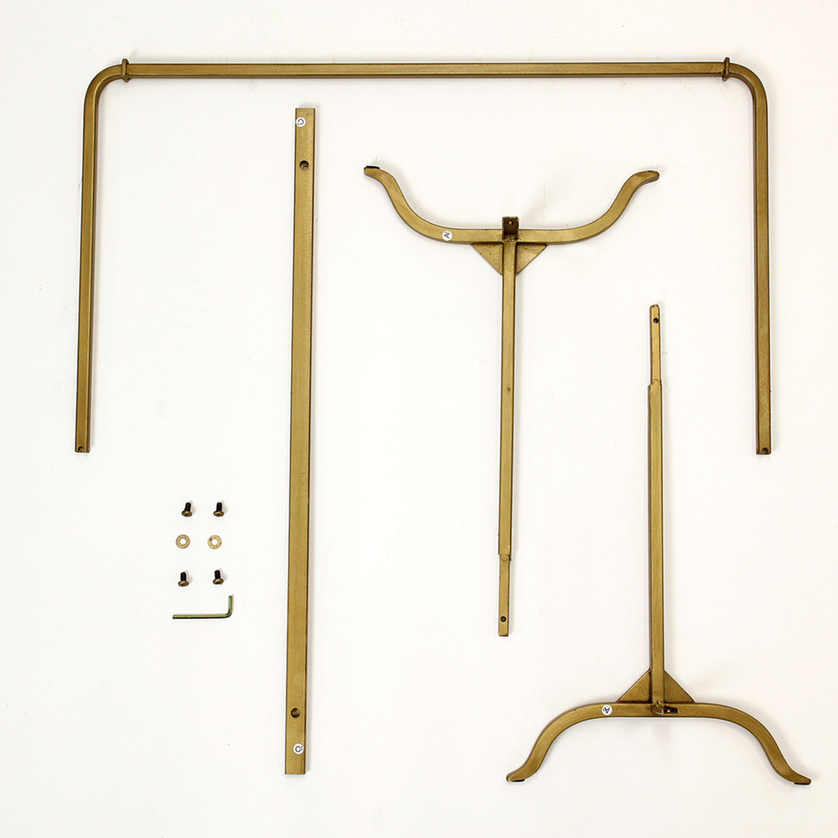 線の存在感を意識したシンプルなデザインのアイアン製ハンガーラックです。高さのない物をかけたり、高低差をつけたい時にも便利です。部屋に置けば、見せるクローゼットとしておしゃれなインテリアとなり、携帯用ハンガーラックとしてマルシェなどのイベントでも活躍してくれるアイテムです。また、ビニルカーテンなどを吊るせば簡易的なソーシャルディスタンスのアイテムとしてもお使いいただけます。