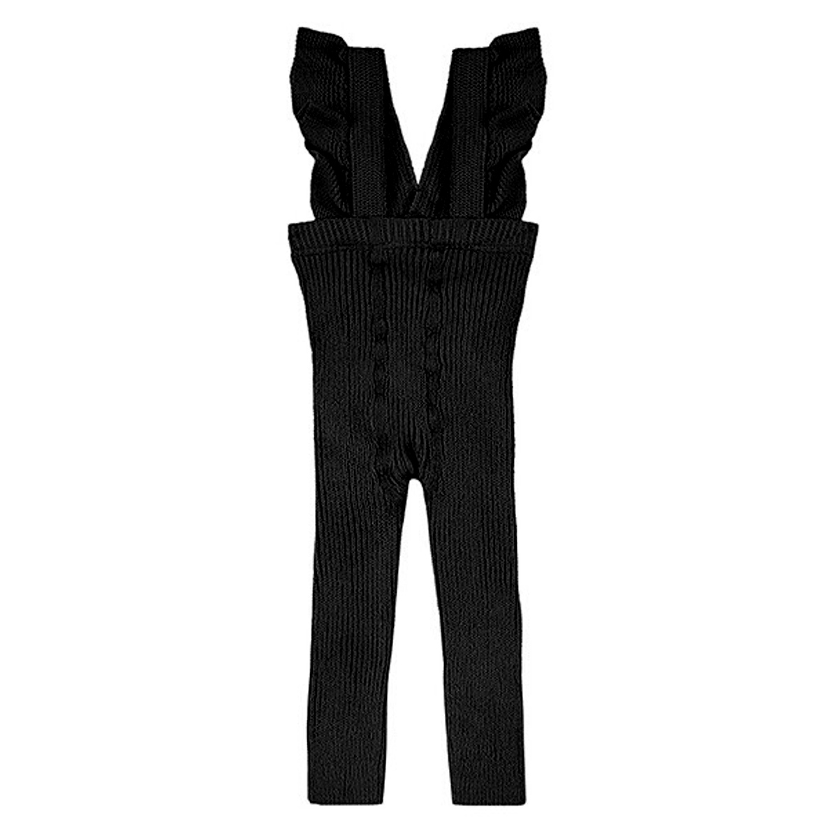 かわいらしいフリルサスペンダーが付いたレギンスです。ウエストもサスペンダーも伸縮性のある生地が使用されており、体にぴったりフィットします。サスペンダーはウエスト部分にしっかり固定されているので、沢山動きまわっても脱げる心配はありません。