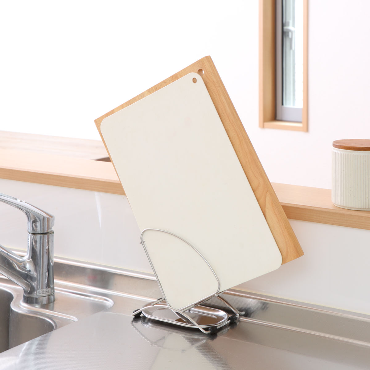 まな板の収納に便利なスタンドです。まな板を傾けて置けるので、洗ったまな板の水切れも抜群です。