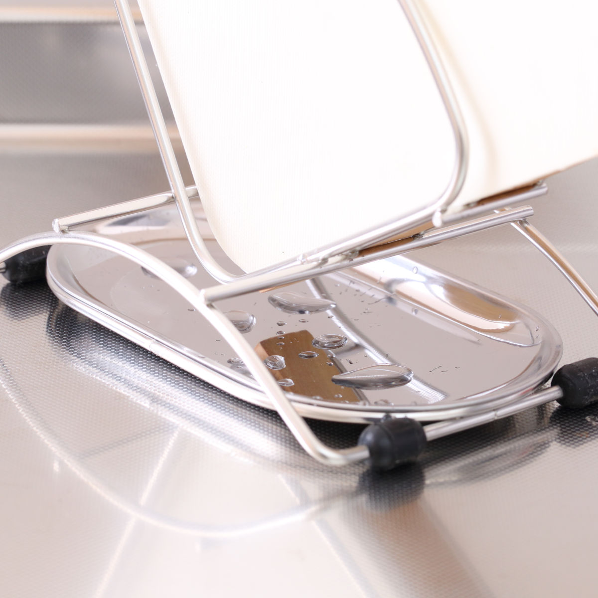 ●水受け用のステンレストレーが付いているので、周りを濡らさずに使用できます。