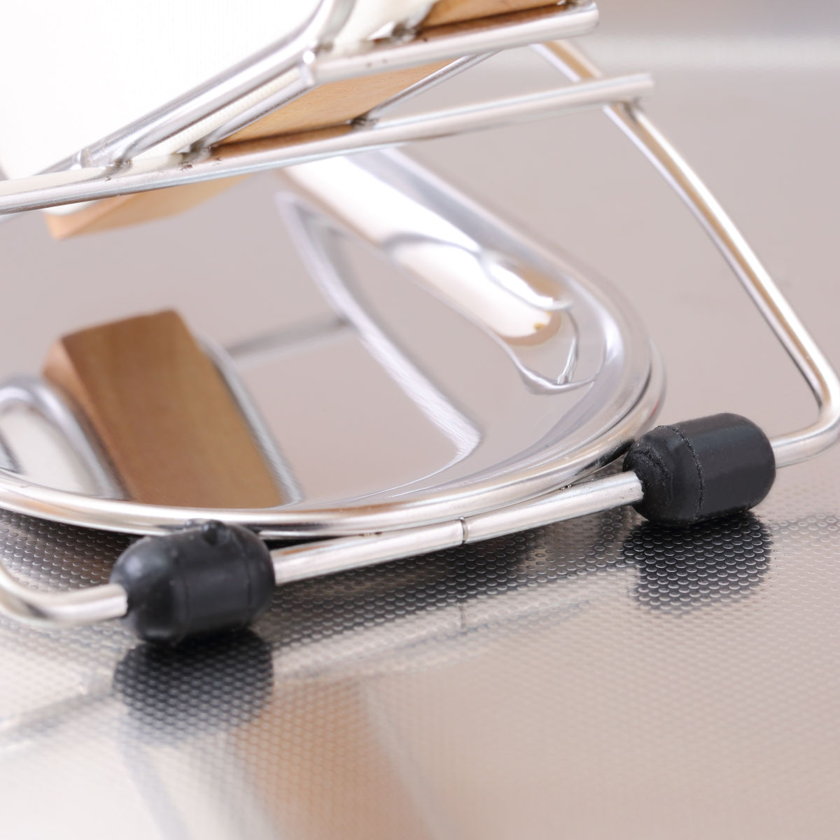 すべり止めゴムが付いているので、シンクの周りを傷つけにくく、水周りでも安定感のある使い心地です。