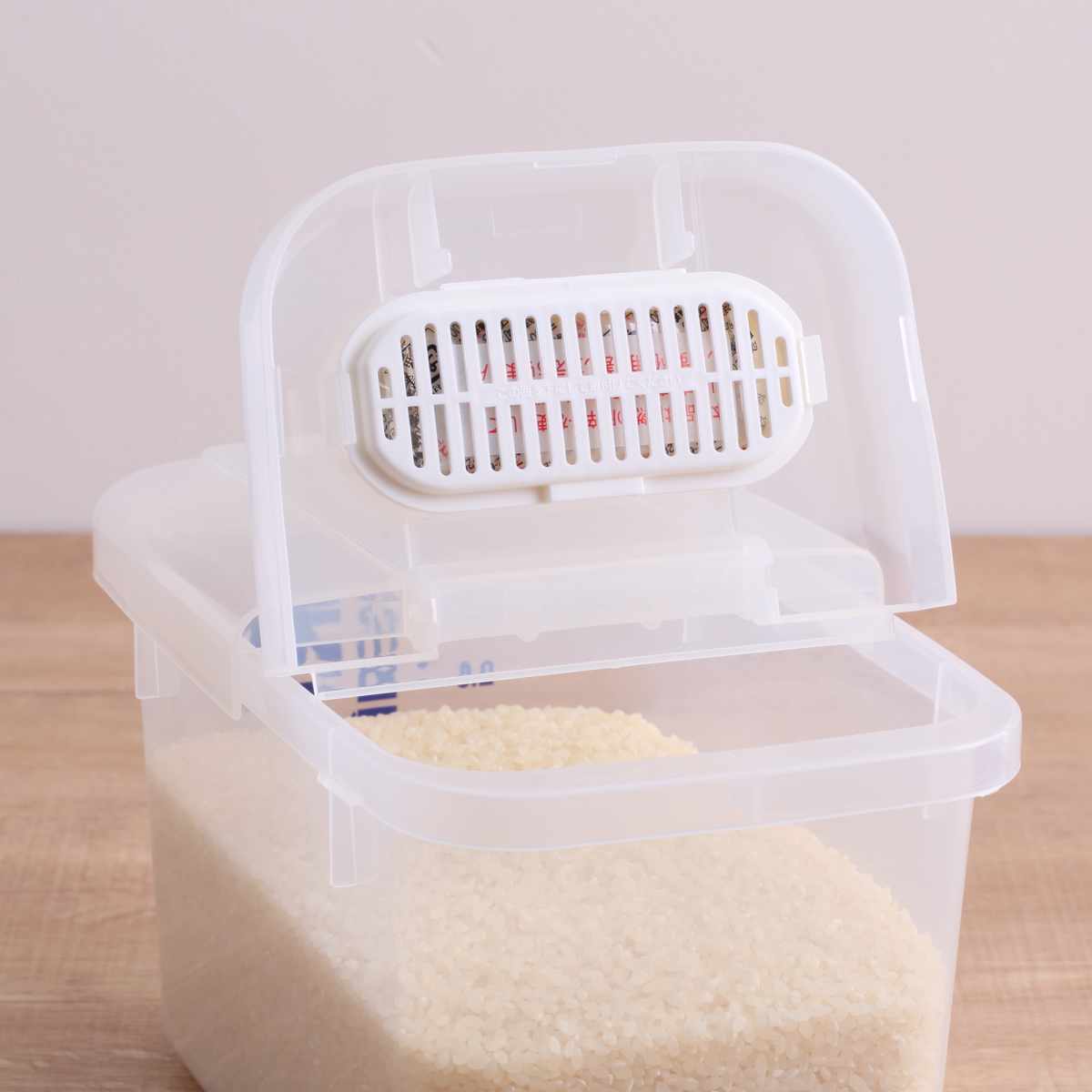 フタの裏側に防虫剤がセットできる米びつです。防虫剤の効果でイヤな害虫を防ぎます。