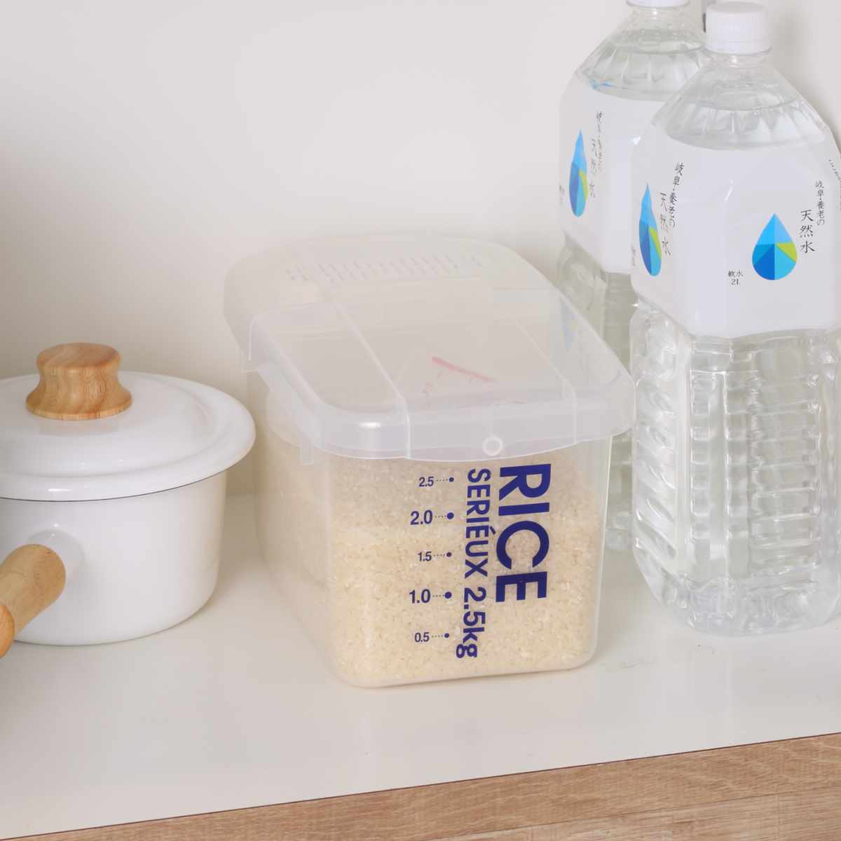 約500gごとに目盛りが付いているので、一目でお米の量が確認できます。