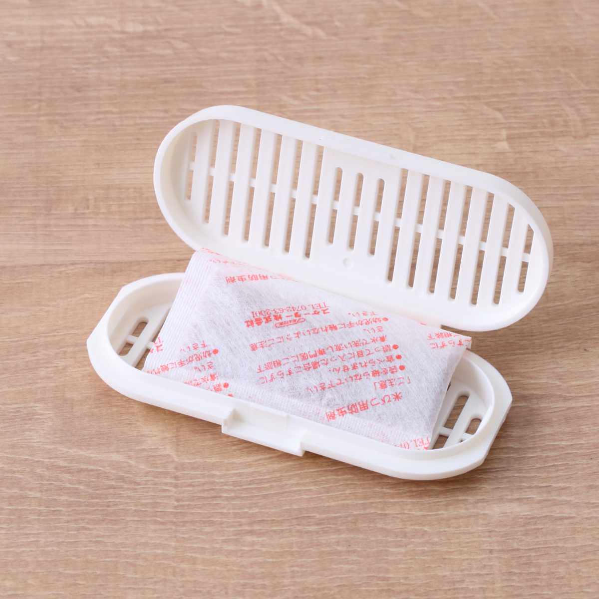 フタの裏側に防虫剤をセットできるケースが付いています。防虫剤は市販の物もご使用になれます。