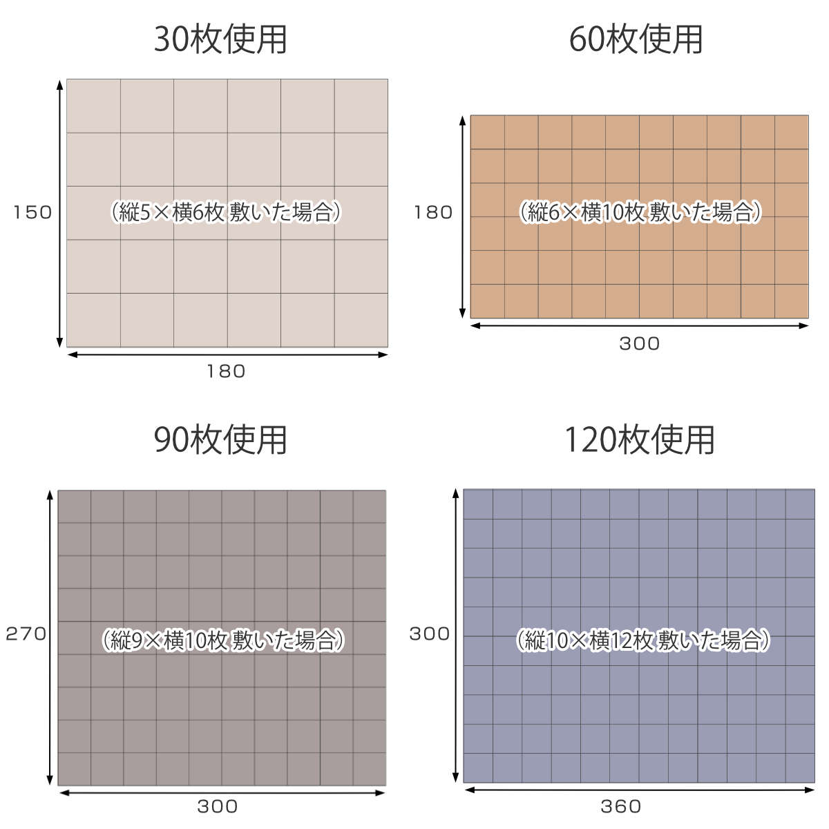 1枚から購入できるから、気軽に模様替えが楽しめます。たとえば、同じ色の30枚セットにアクセントカラーをプラスすれば、さらに個性的な仕上がりに。豊富なカラーバリエーションを自由に組み合わせて、自分だけのデザインをお楽しみください。