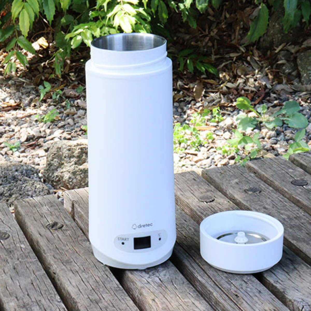 水筒のようなスタイリッシュな形状なのでリュックやキャリーバッグにも入れやすく、気軽に持ち運べます。ホテルや外出先の給湯器や電気ケトルは衛生面が気になる、という方にもおすすめです。