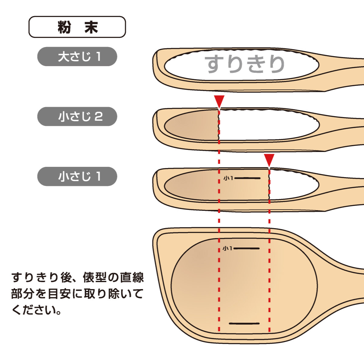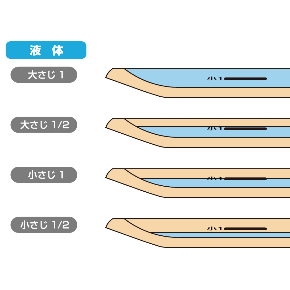 木べら1杯が大さじ1と同量になるように作られています。小さじ1の目盛りつきなので、この1本で大さじ・小さじの計量が可能です。