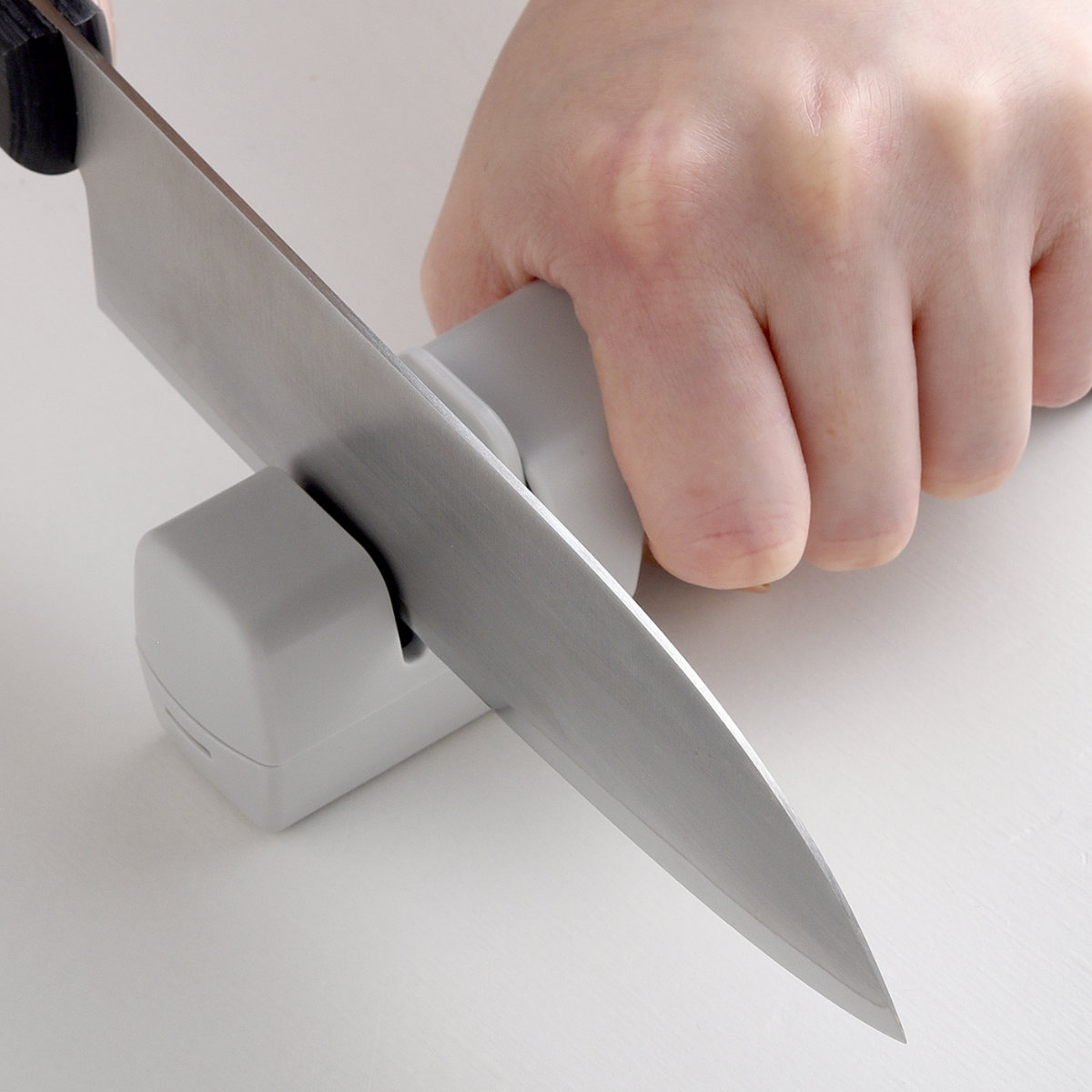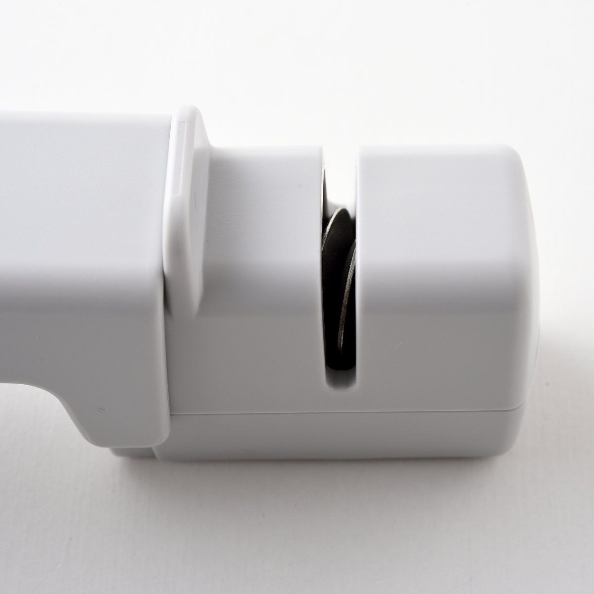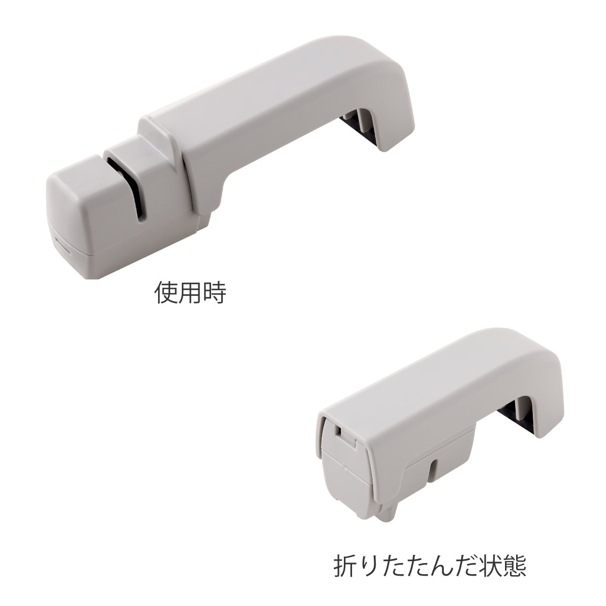 必要なときにサッと手軽に包丁のお手入れができるシャープナーです。使わないときは小さく折りたためるので、場所を取らずコンパクトに収納ができます。