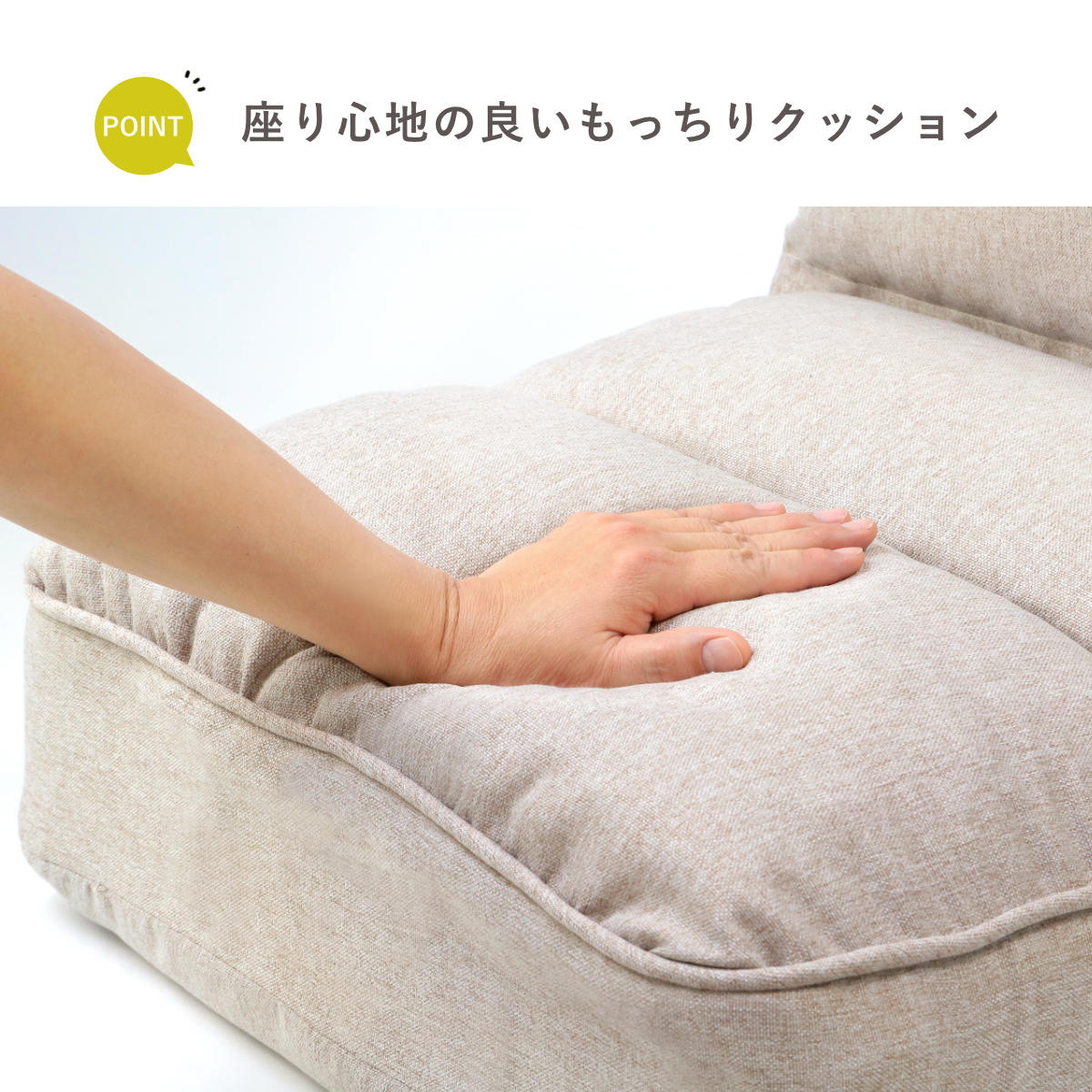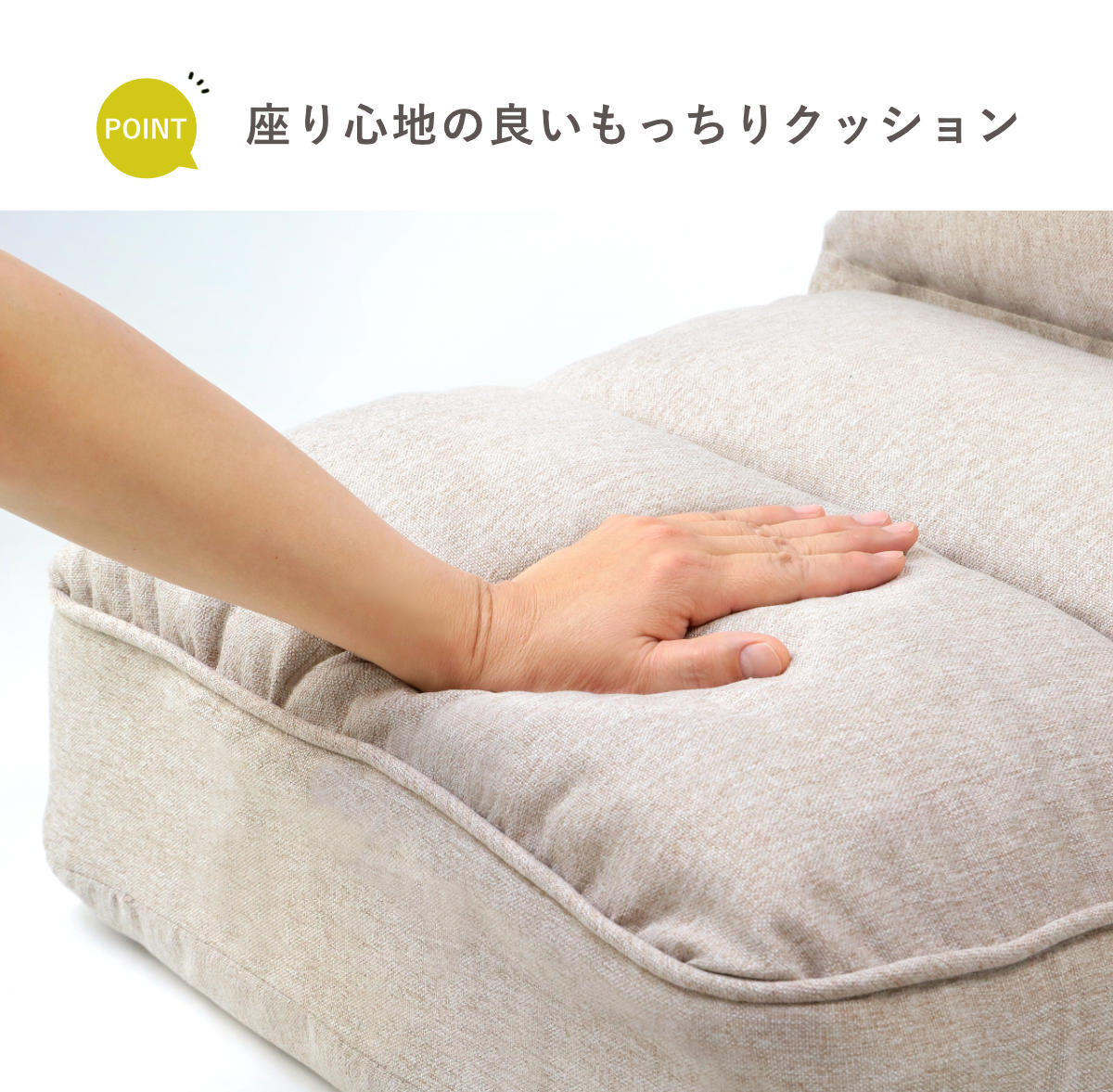座面と背もたれにウレタンフォームとウレタンチップを使用しています。柔らかくほどよい弾力のあるもっちりとした座り心地で、長時間座っていてもへたりにくく疲れにくいです。