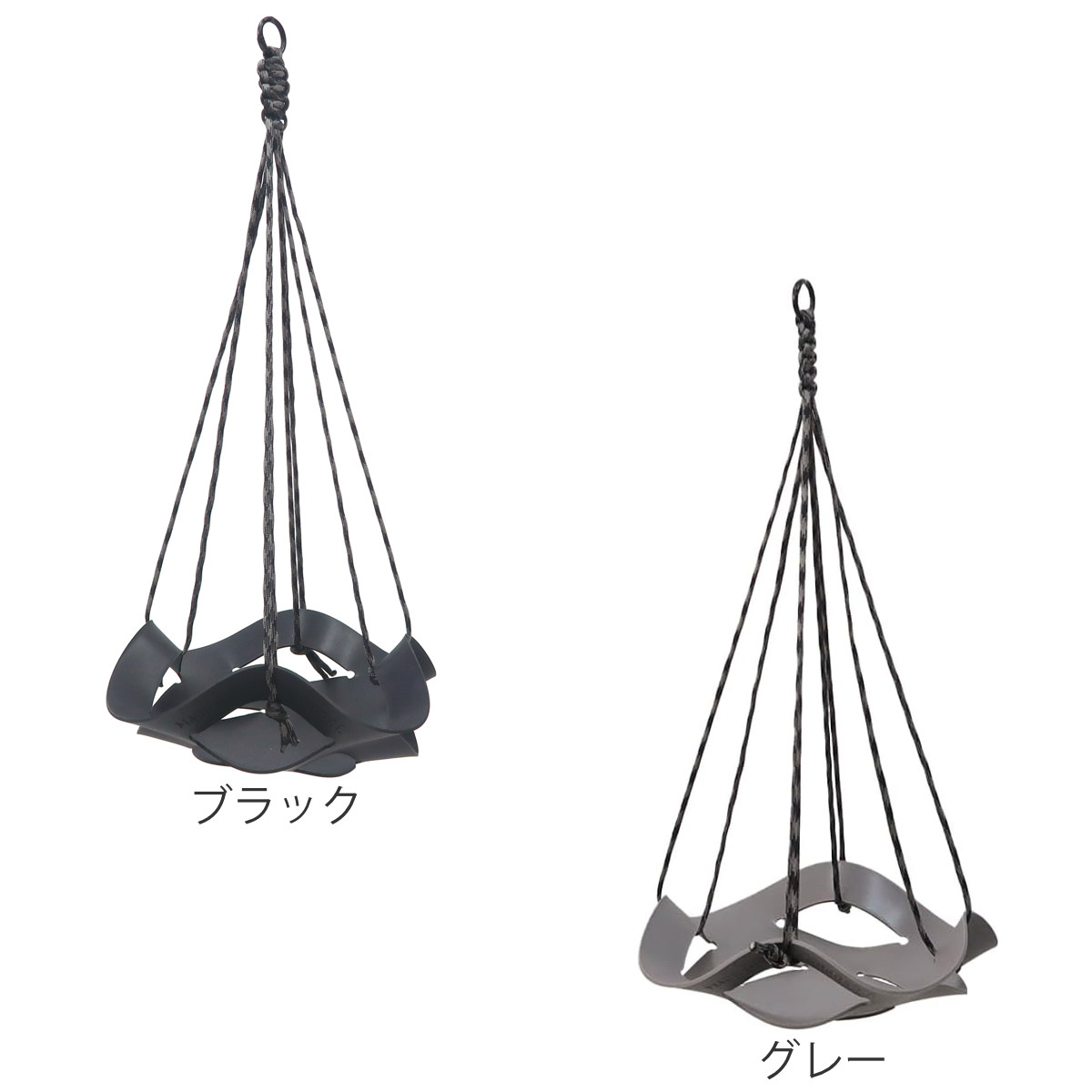 ラバー素材とパラコードを組み合わせたプラントハンガーです。パラコードの先端にはリングが付属しており、S字フックなどと組み合わせて好きな場所でハンギングをお楽しみいただけます。Sサイズは3号~4号(直径90mm~直径120mm)の鉢に対応しています。
