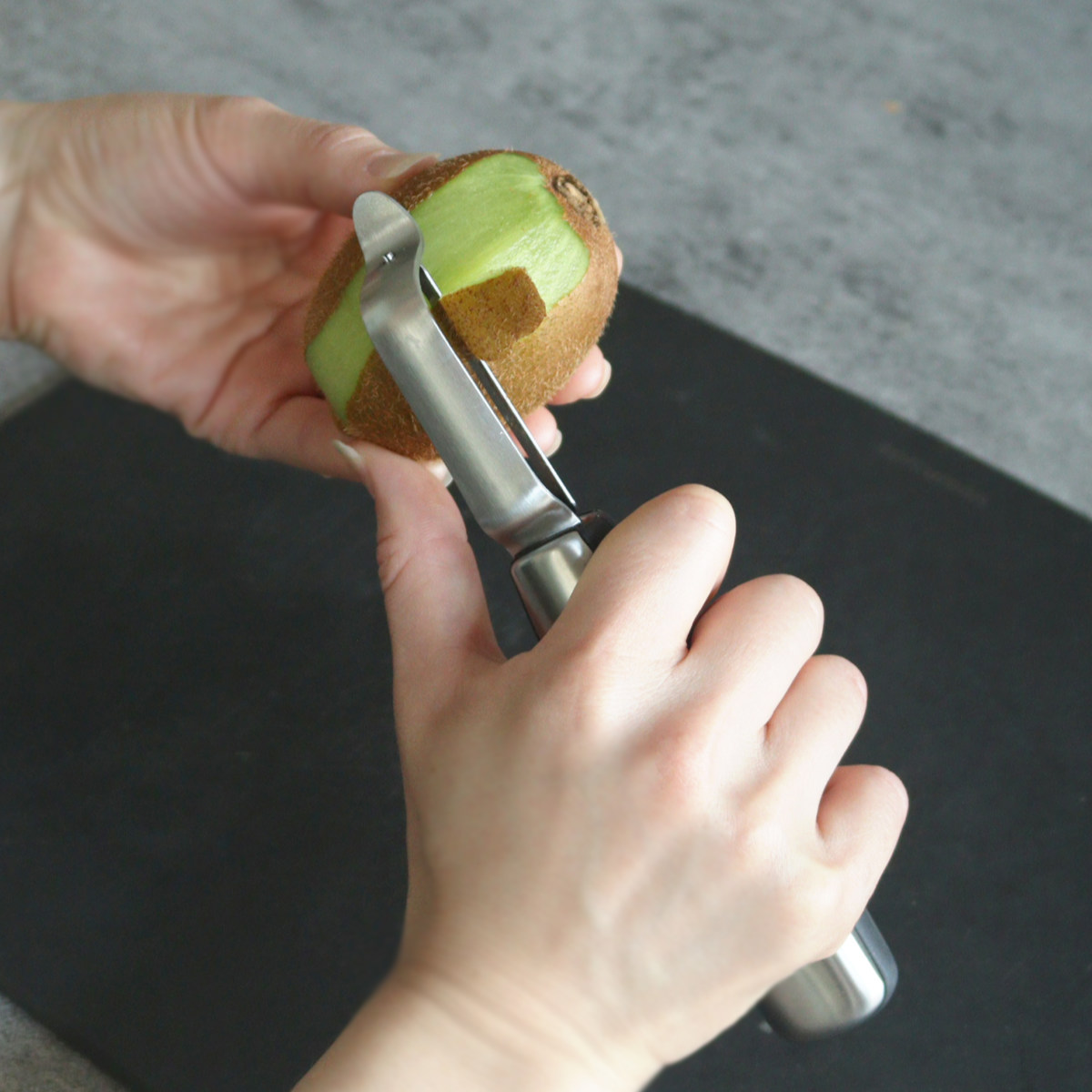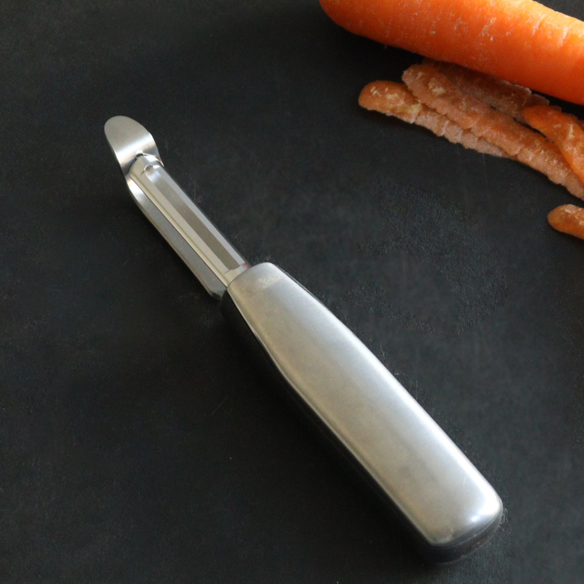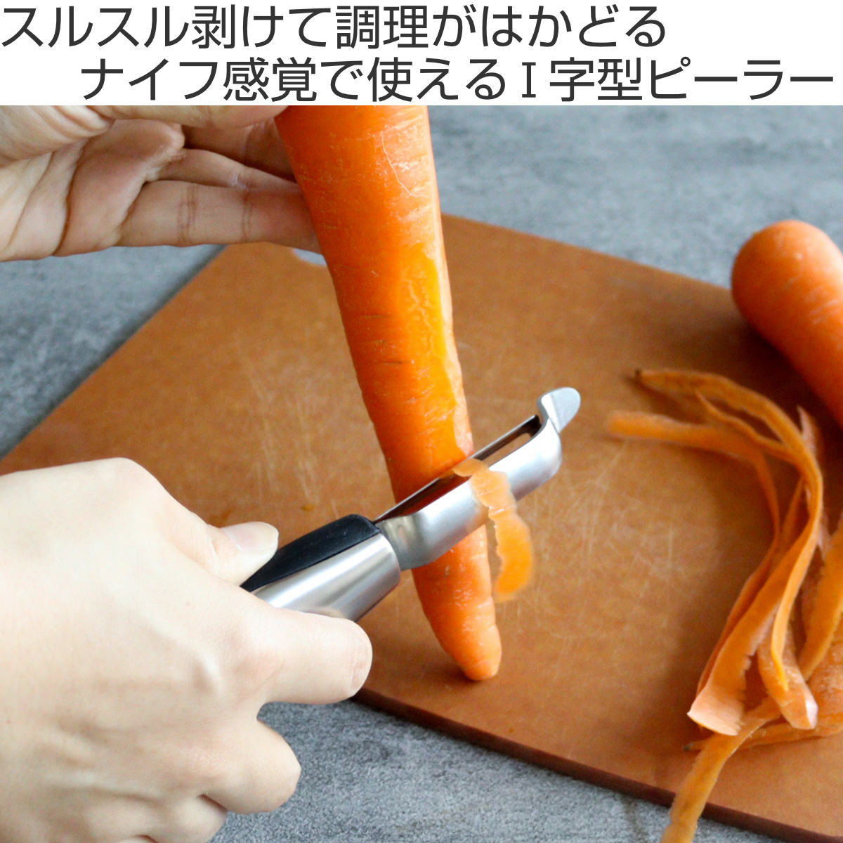 切れ味抜群のステンレス刃が自慢のI字型ピーラーです。ジャガイモなどのいびつで剥きにくい食材も、軽い力でスルスル剥けます。I字型のピーラーはペティナイフのような感覚で手軽に使えて、果物の皮剥きもスイスイとこなせます。