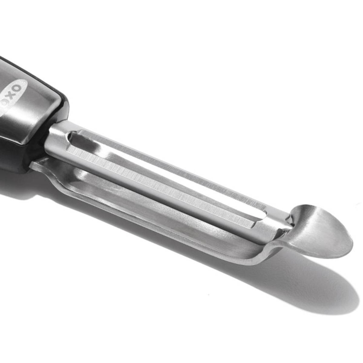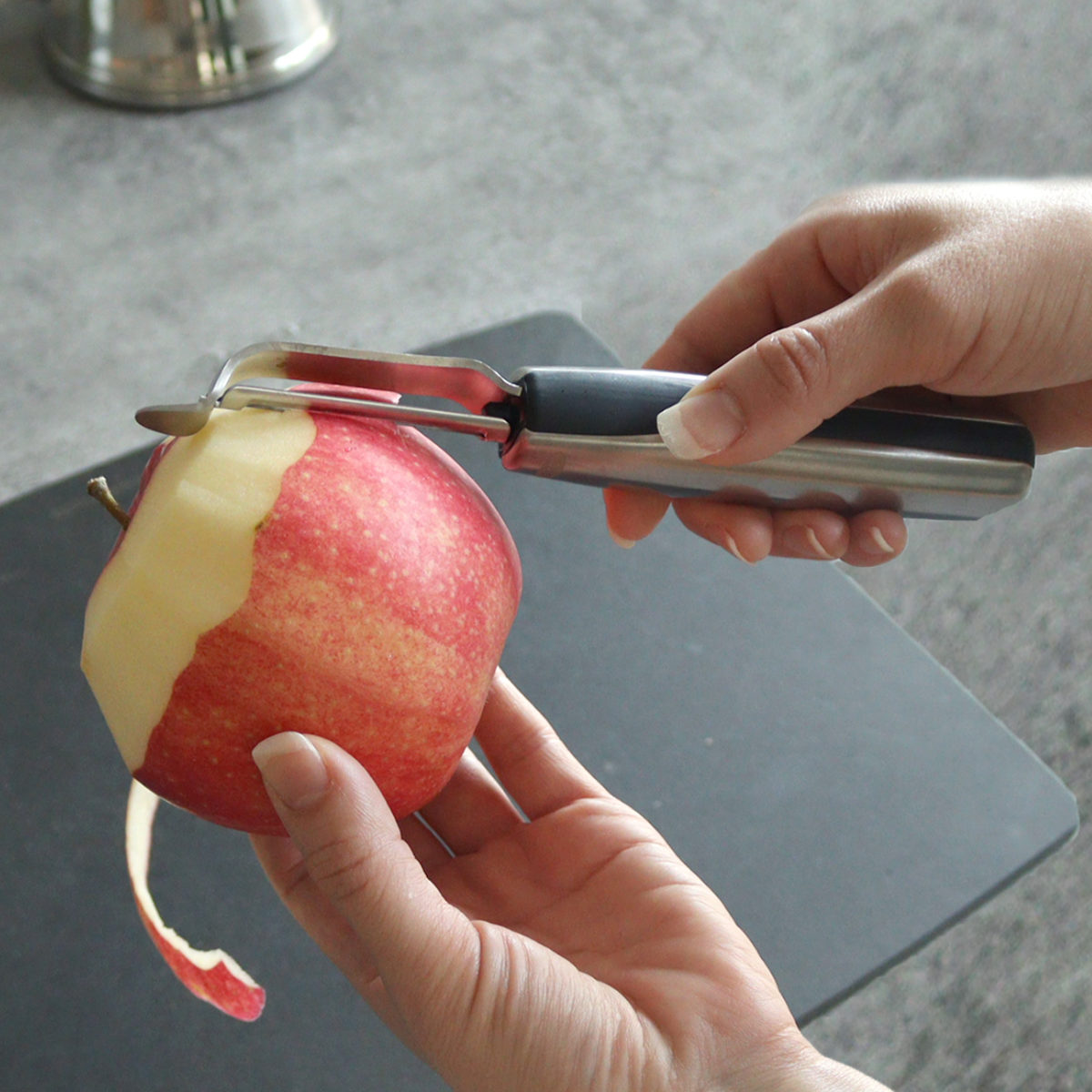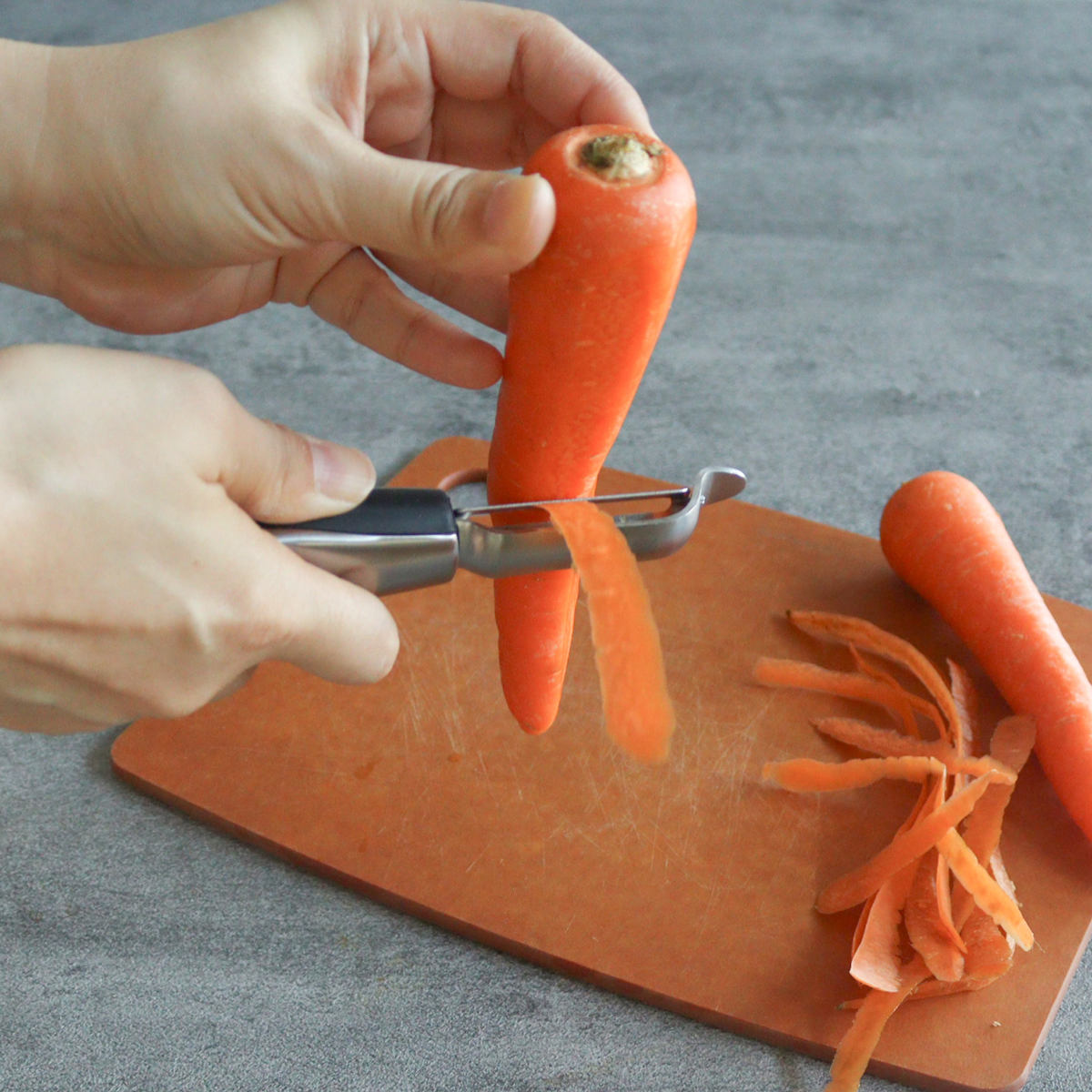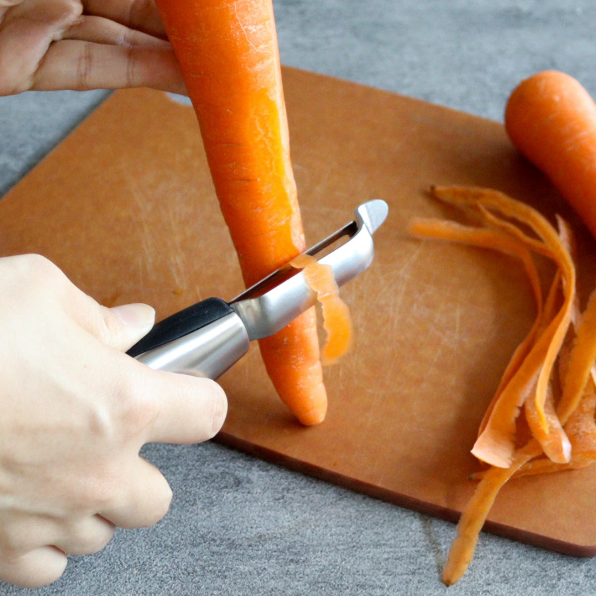 切れ味抜群のステンレス刃が自慢のI字型ピーラーです。ジャガイモなどのいびつで剥きにくい食材も、軽い力でスルスル剥けます。I字型のピーラーはペティナイフのような感覚で手軽に使えて、果物の皮剥きもスイスイとこなせます。