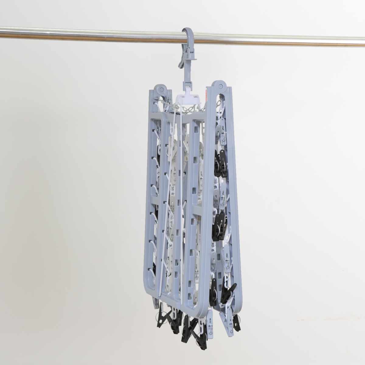急な降雨時などに洗濯物を取り込みやすい下折れ式です。吊るしてコンパクトに収納が可能です。