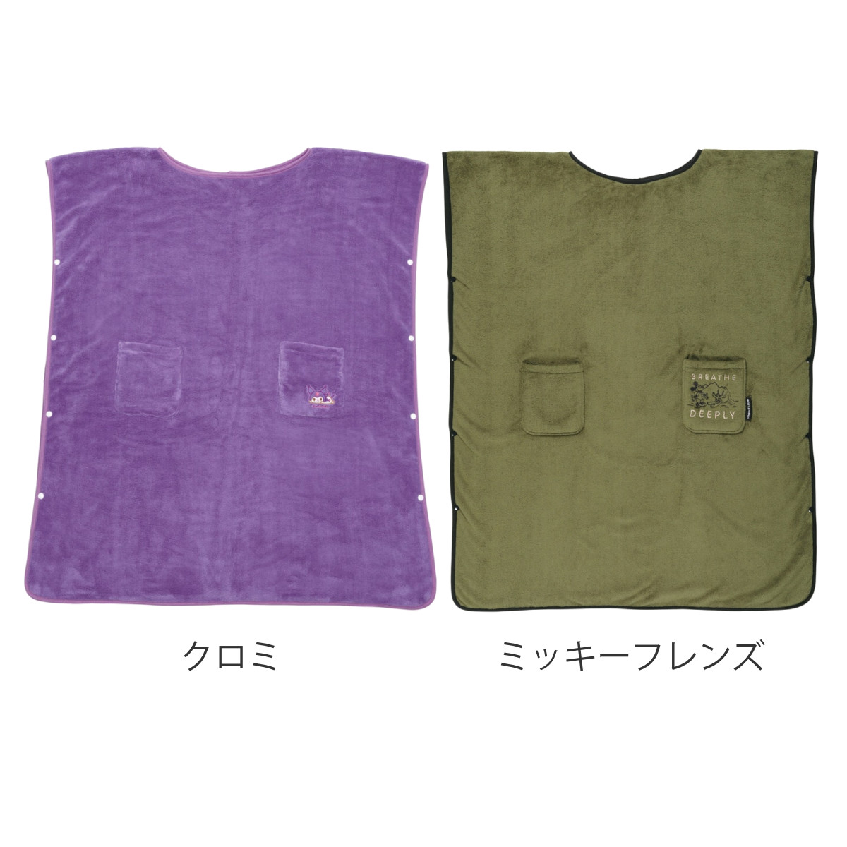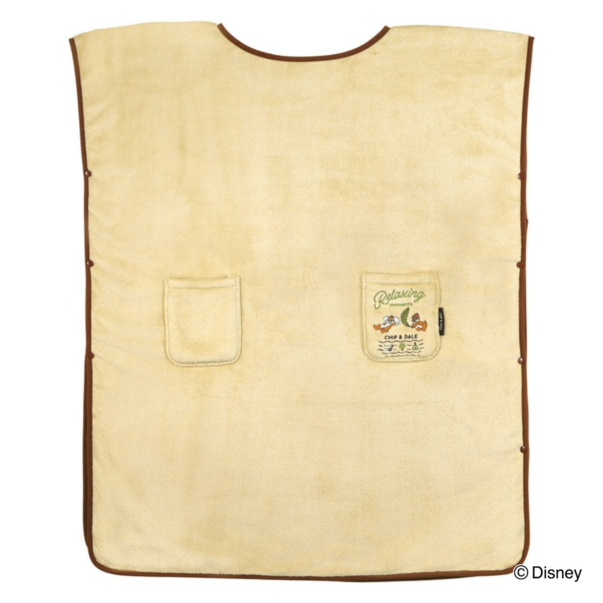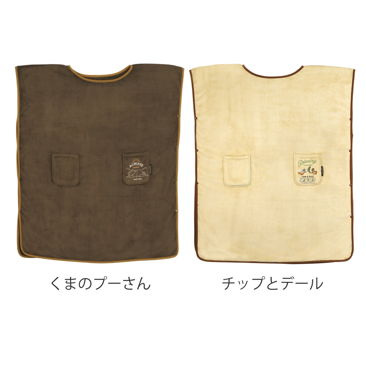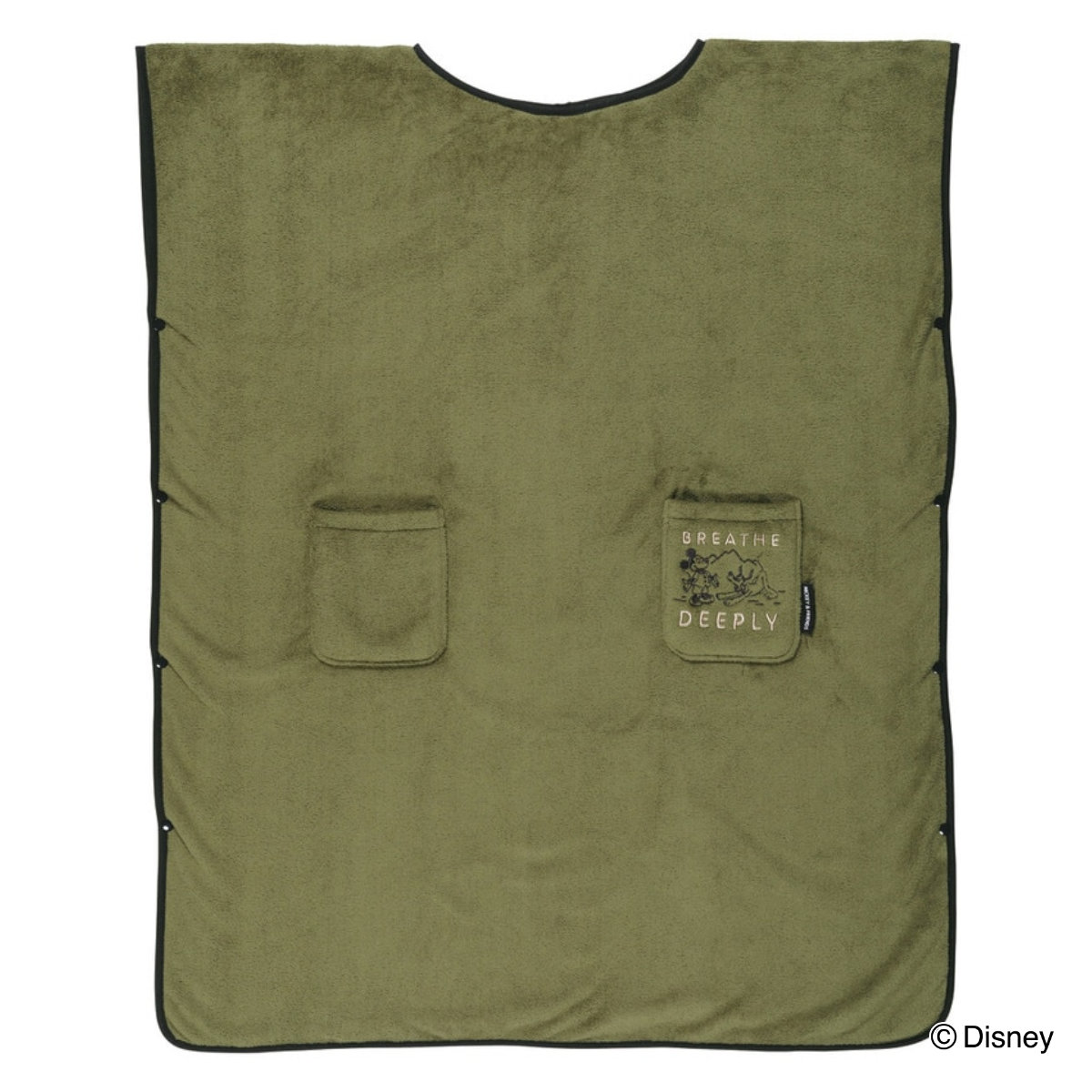 バスタオルのサイドには着脱を楽にできるスナップボタンが付いています。ポケットは左右に1つずつ付いているので、小物を入れておくのにも便利です。