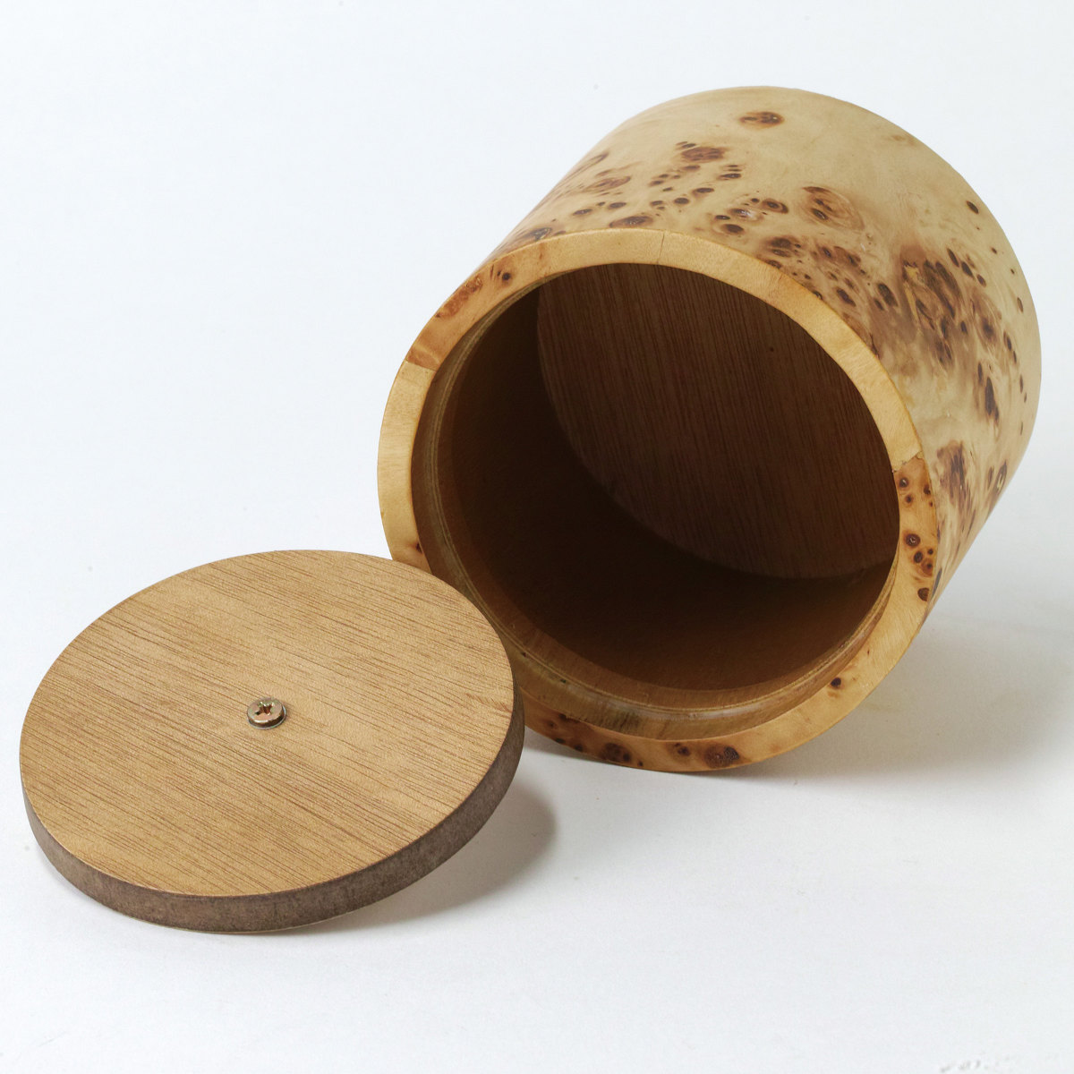 あたたかみのある天然木バーチ材を使用して作られた蓋つきポットです。美しい木目を最大限に活かした、味わい深く存在感のあるポットは、家中のどこに置いても目を惹く収納アイテムです。グリーンとの相性も抜群で、小さな鉢植えやドライフラワーなどを入れて飾るのもおすすめです。