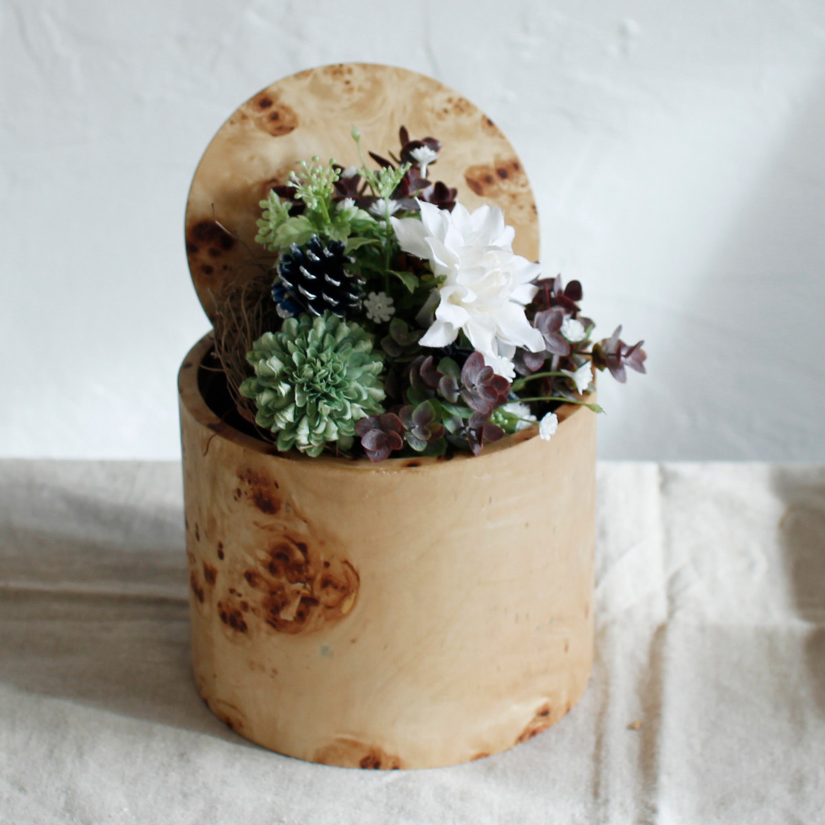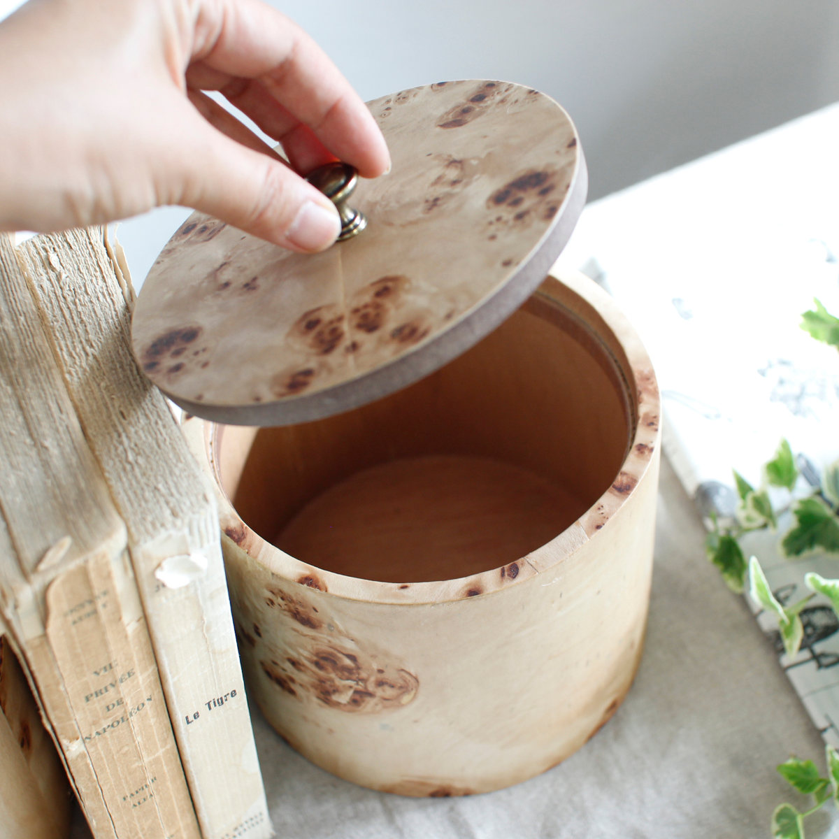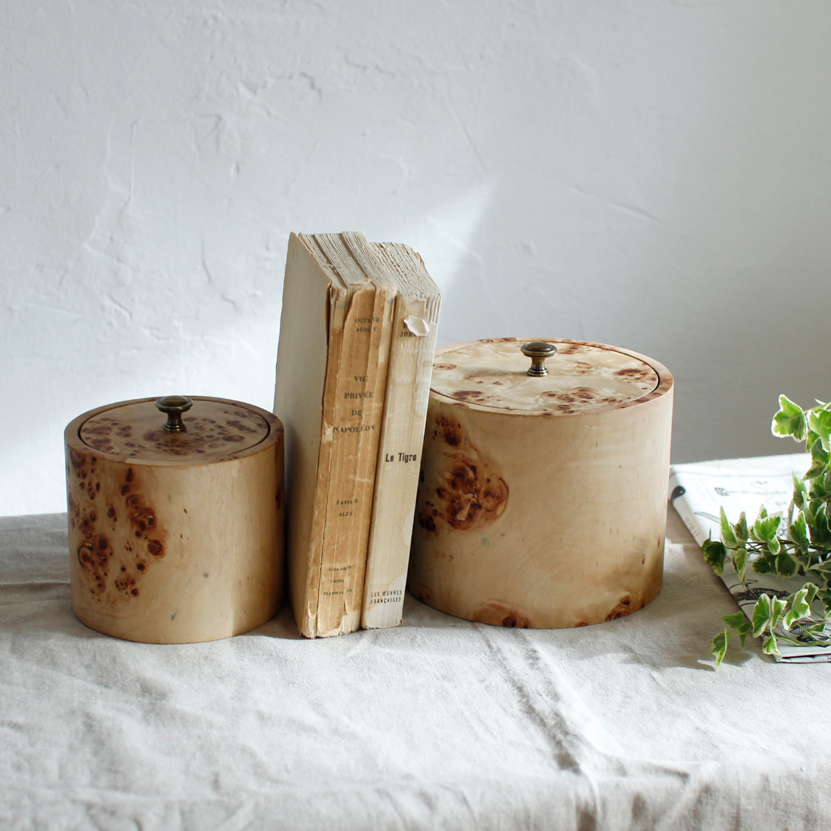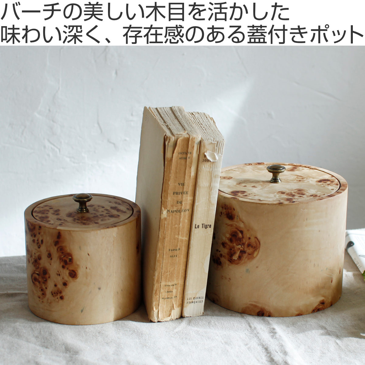 あたたかみのある天然木バーチ材を使用して作られた蓋つきポットです。美しい木目を最大限に活かした、味わい深く存在感のあるポットは、家中のどこに置いても目を惹く収納アイテムです。グリーンとの相性も抜群で、小さな鉢植えやドライフラワーなどを入れて飾るのもおすすめです。