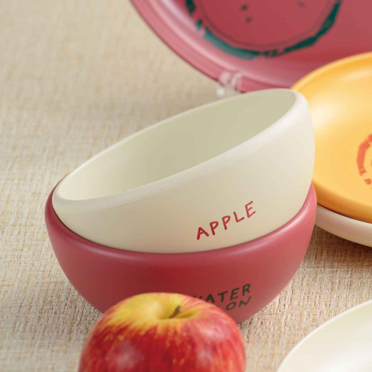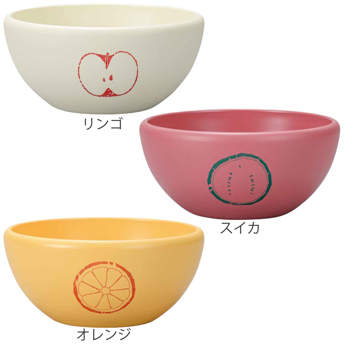 フルーツのイラストがアクセントになっている「フルン」シリーズです。軽くて割れにくいので扱いやすく、大人も気軽に使いやすいカラーが魅力です。リンゴ、スイカ、オレンジのフルーツ柄が描かれた食器で毎日の食卓をより楽しくできそうです。