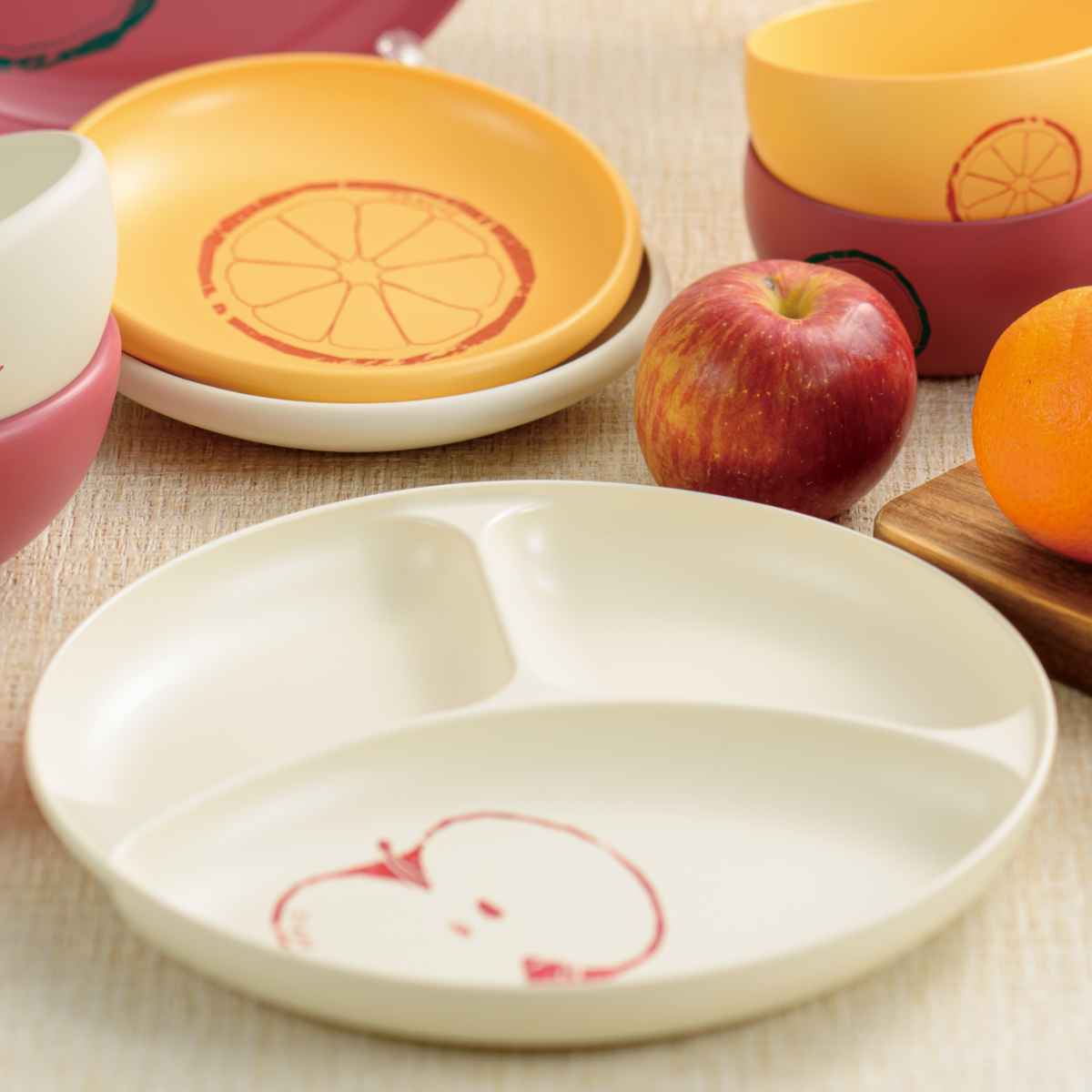 フルーツのイラストがアクセントになっている「フルン」シリーズです。軽くて割れにくいので扱いやすく、大人も気軽に使いやすいカラーが魅力です。リンゴ、スイカ、オレンジのフルーツ柄が描かれた食器で毎日の食卓をより楽しくできそうです。