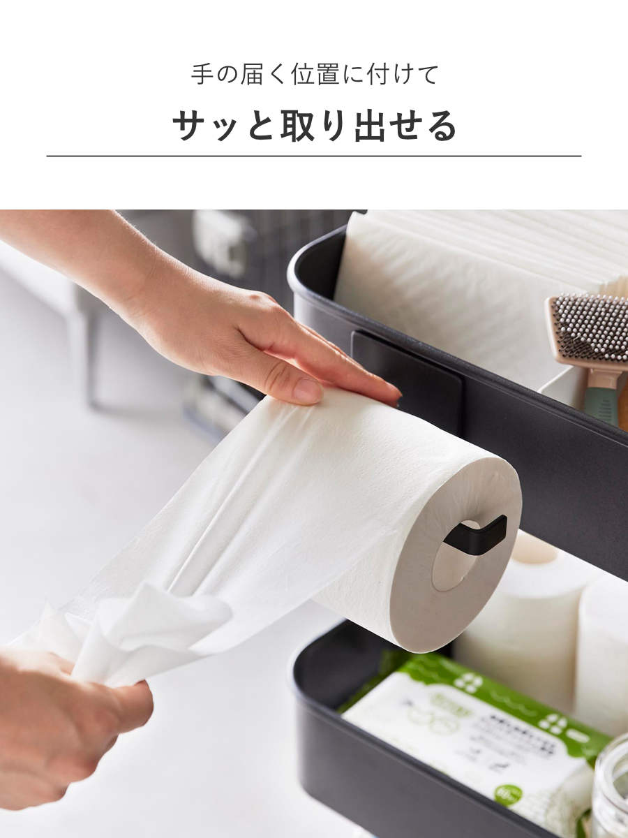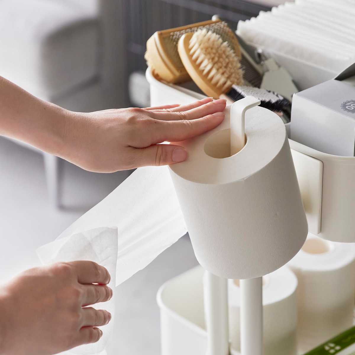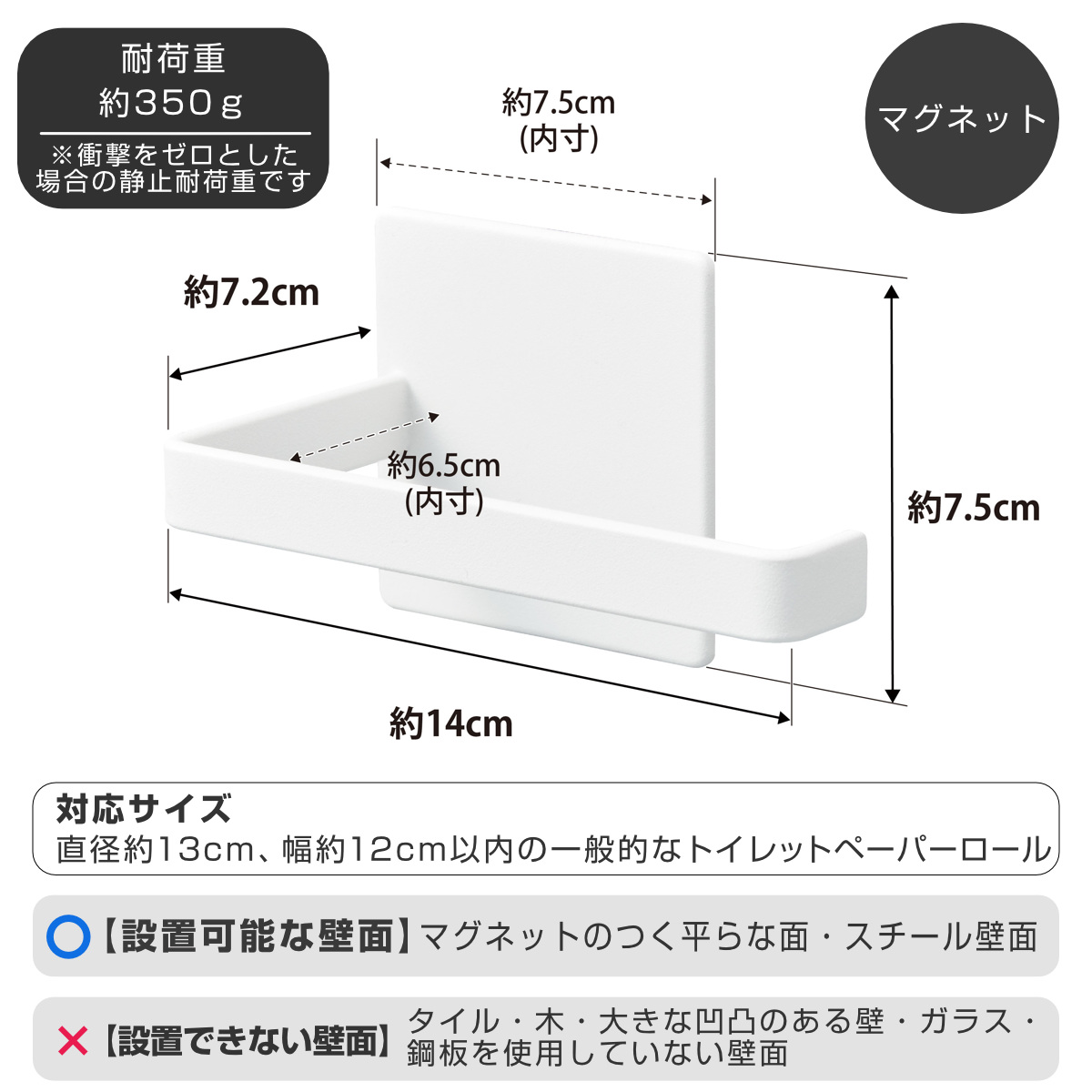 マグネットで取り付けできるトイレットペーパーホルダーです。トイレットペーパーを引っ掛けるだけの簡単収納なので取り換えも楽に行えます。海外製のトイレットペーパーにも対応しています。