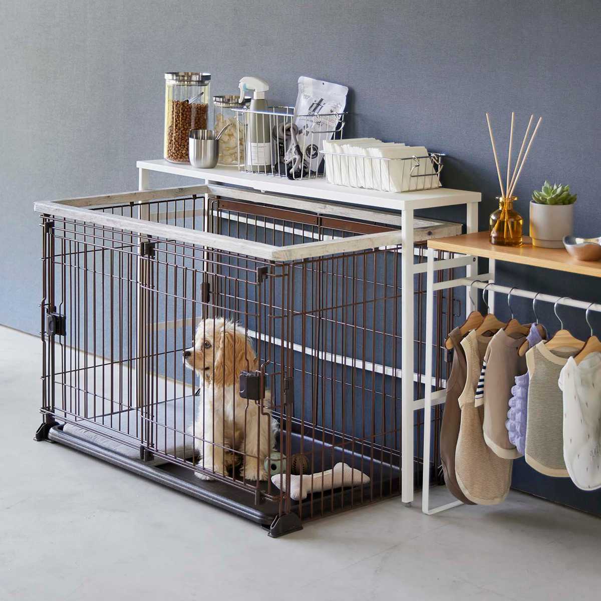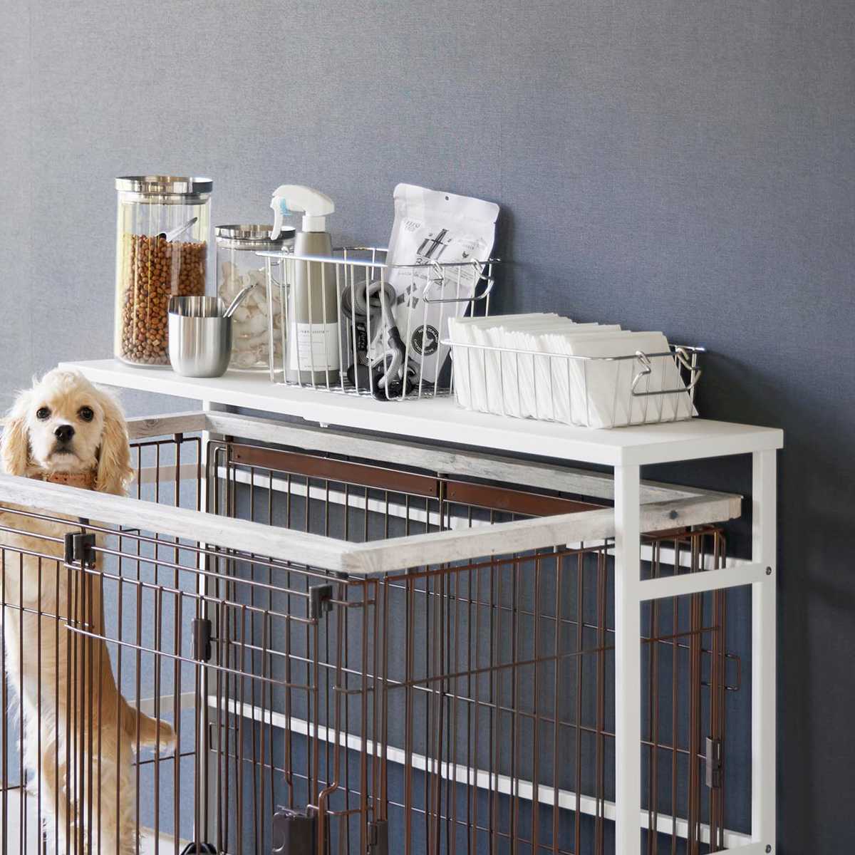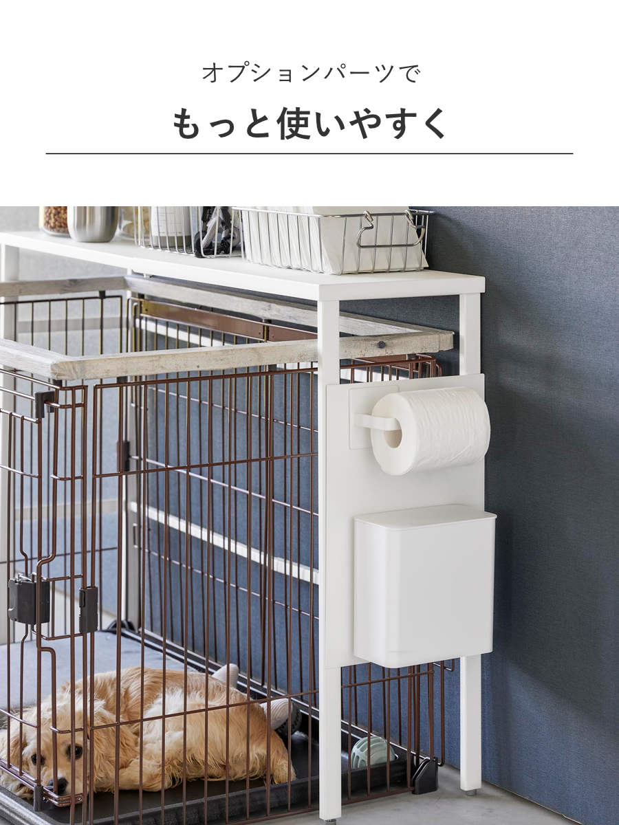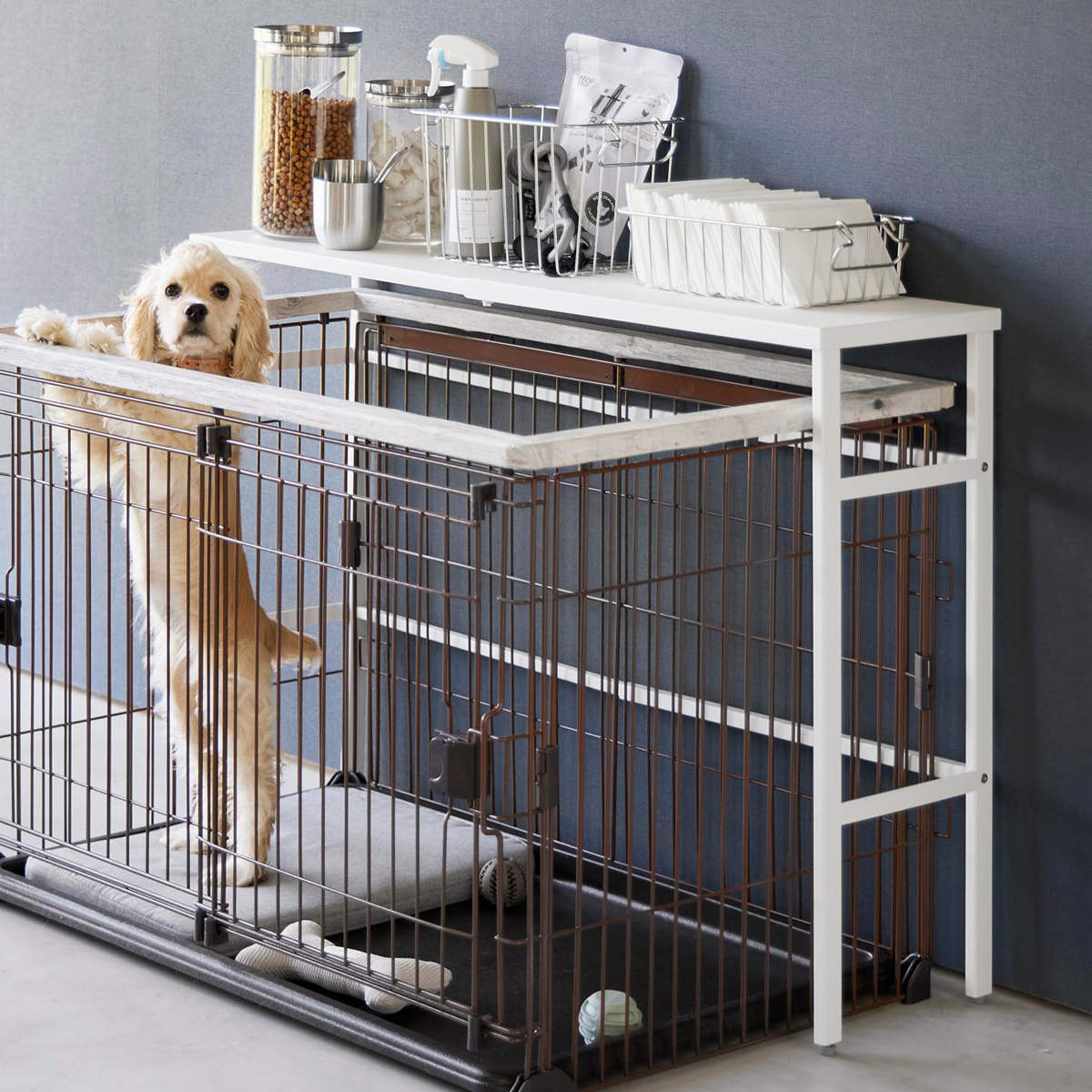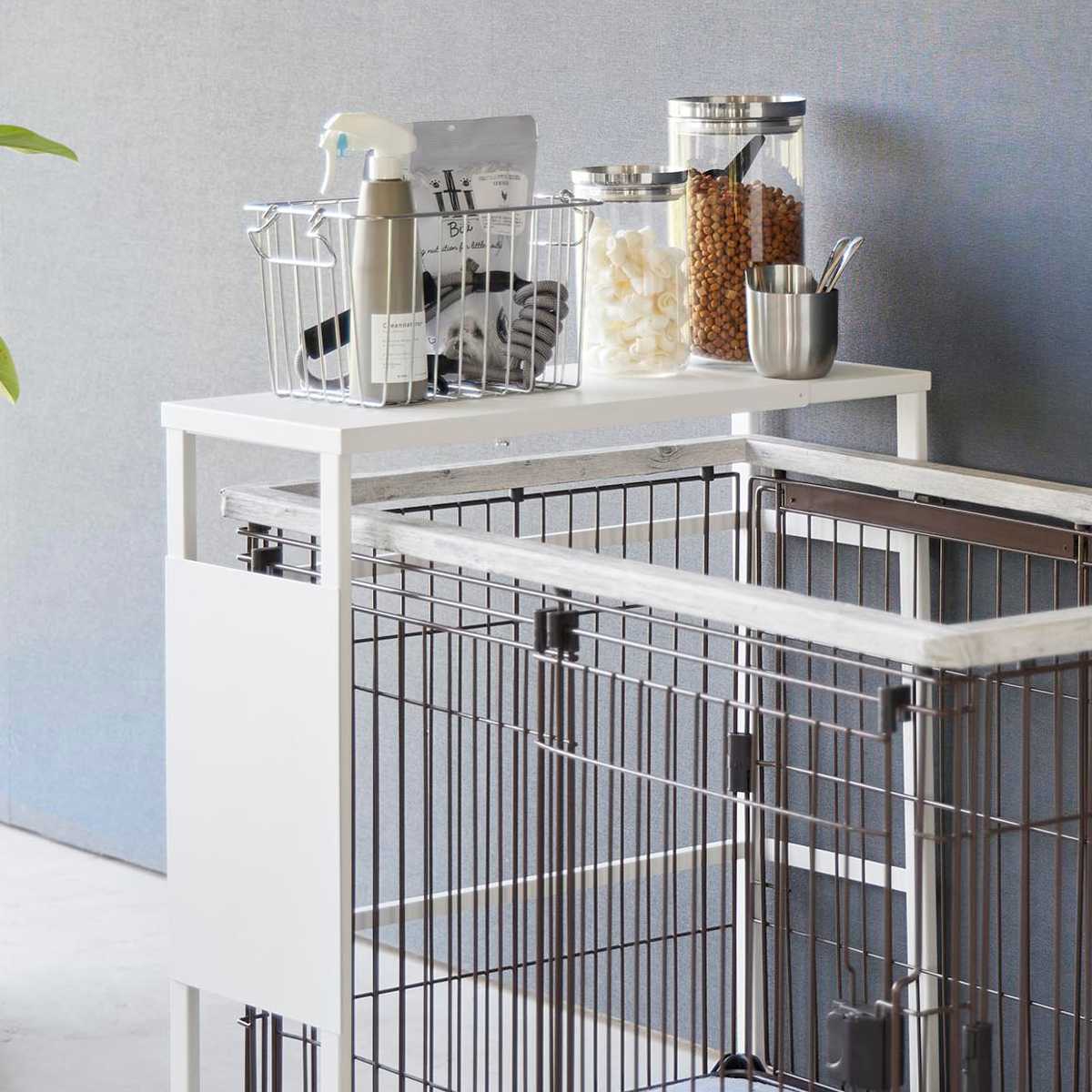 ペットケージ上のデッドスペースを有効活用できるペットケージ上ラックです。ペットのご飯やおもちゃ、ケアアイテムなどをすぐに使える場所に収納することで、より使いやすく快適になります。