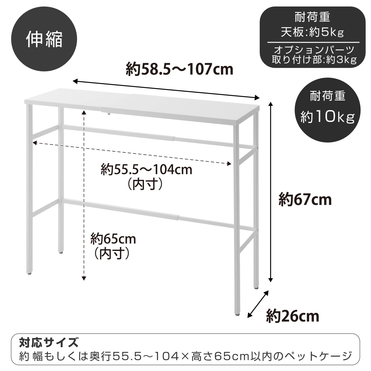 | サイズ | 約 幅58.5~107×奥行26×高さ67(cm) 内寸 約 幅55.5~104×高さ65(cm) |