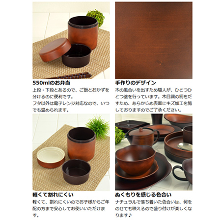 木のような暖かさを感じる樹脂製食器シリーズのお弁当箱