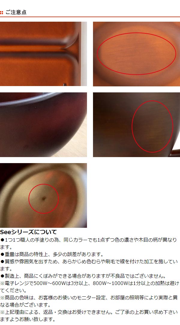 Seeシリーズについて●1つ1つ職人の手塗りの為、同じカラーでも1点ずつ色の濃さや木目の柄が異なります。