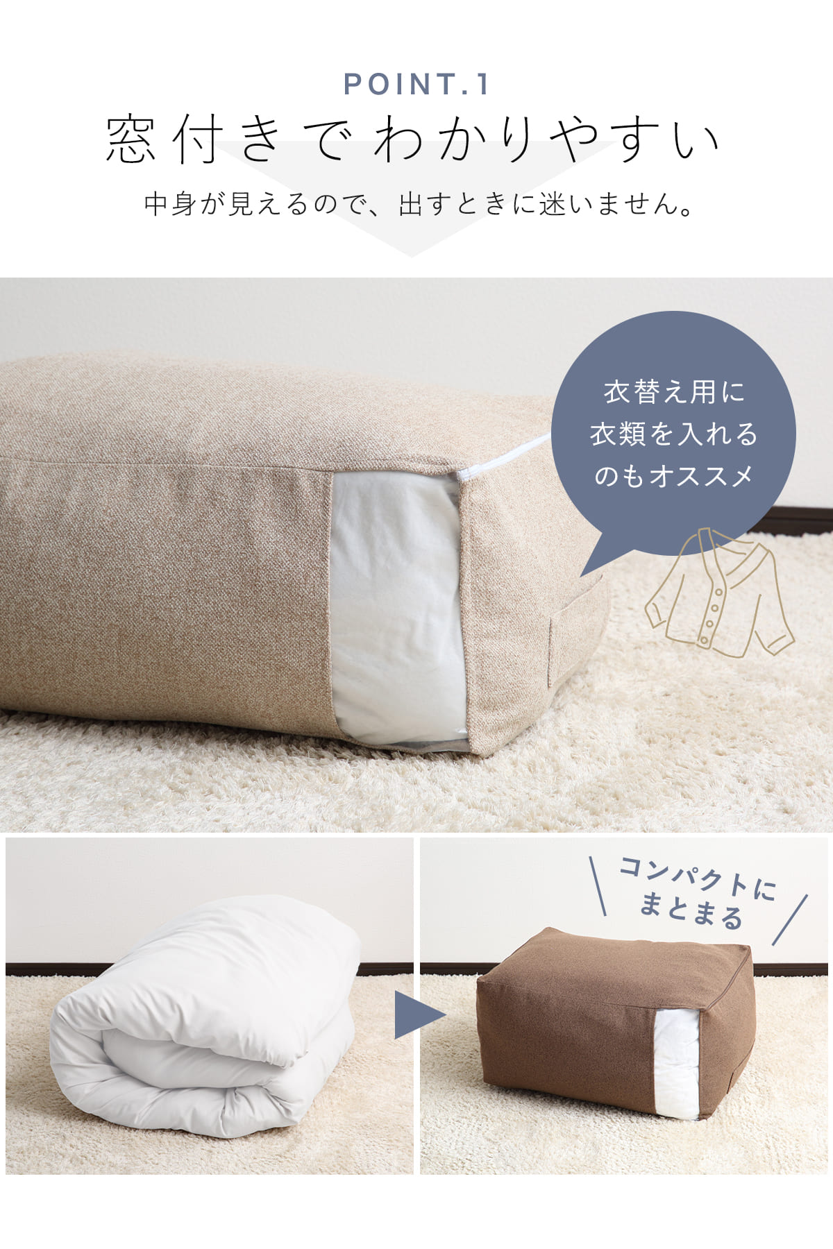 掛け布団をすっきり収納 窓から中が見える