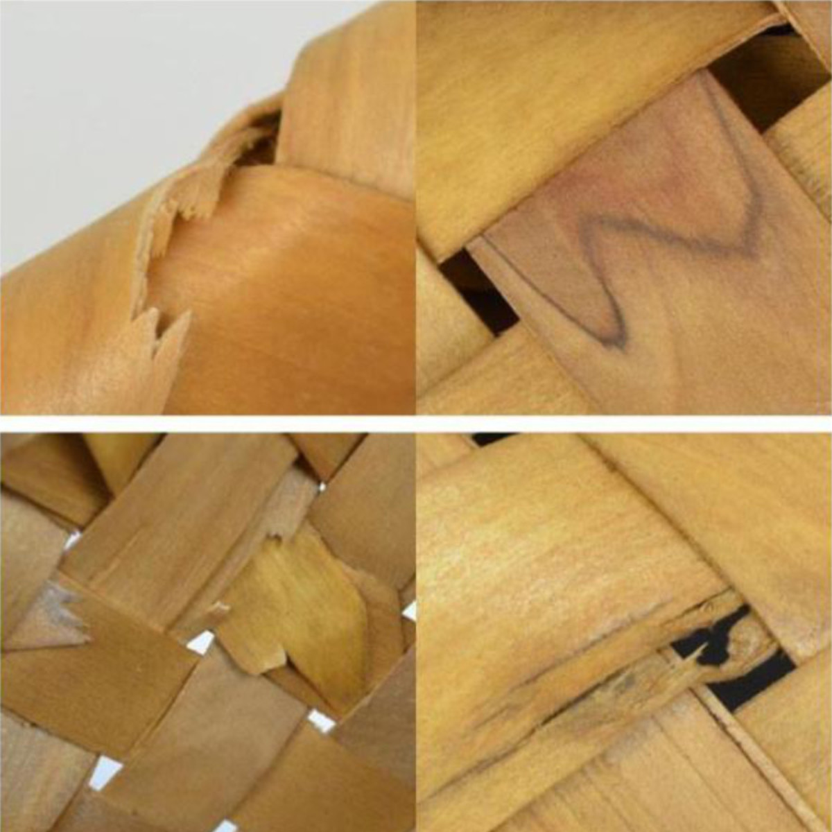 幅広のウッドチップをざっくりと編み込んで作られたバスケットです。ふっくらと仕上げた網目のデザインが特徴的で、木目や節など、天然素材ならではの表情が楽しめます。香りや色合いから木の温かみを感じ、お部屋をやわらかい雰囲気にしてくれます。