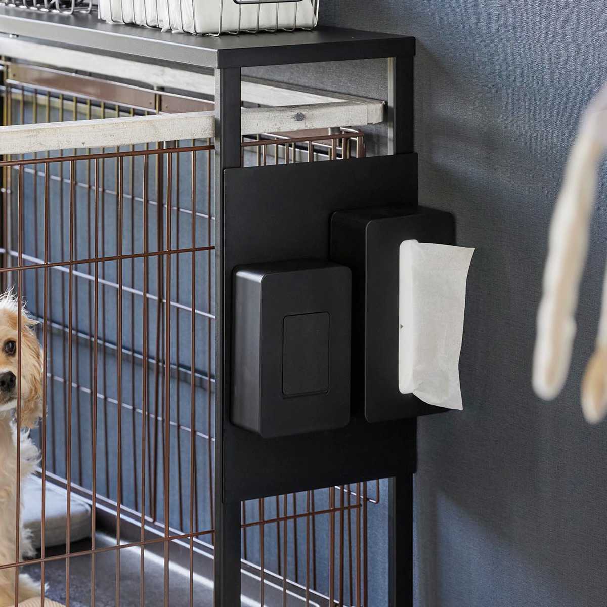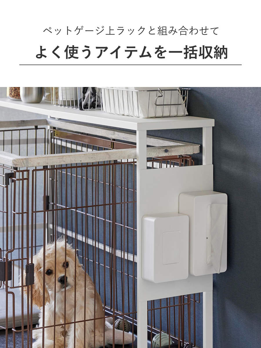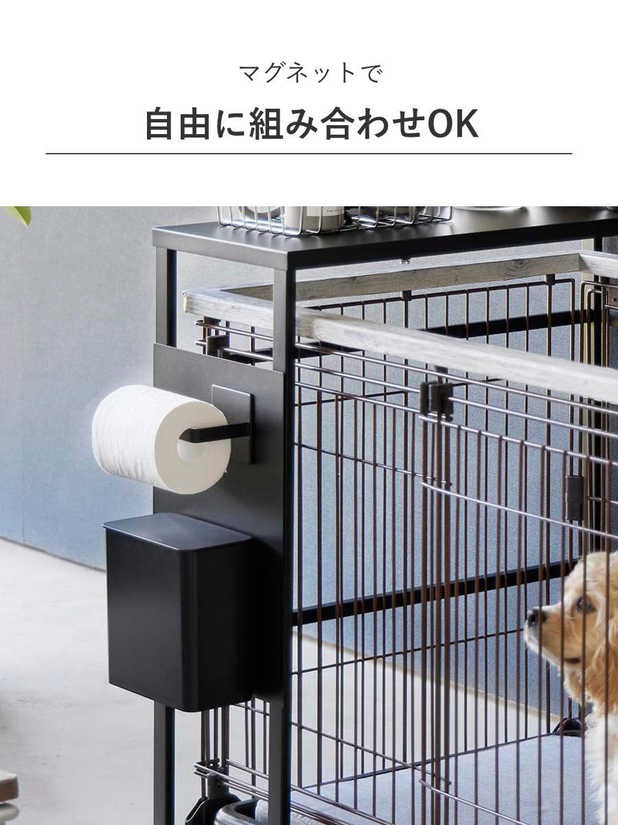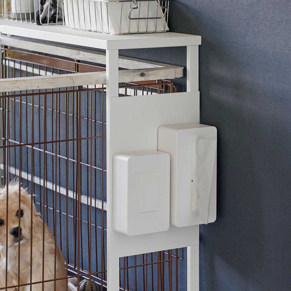 「伸縮ペットケージ上ラック タワー」に取り付けできるオプションパーツです。マグネット式のアイテムを取り付けできるようになります。ペットのおもちゃやケアアイテムなどをすぐに使える場所に収納することで、より使いやすく快適になります。