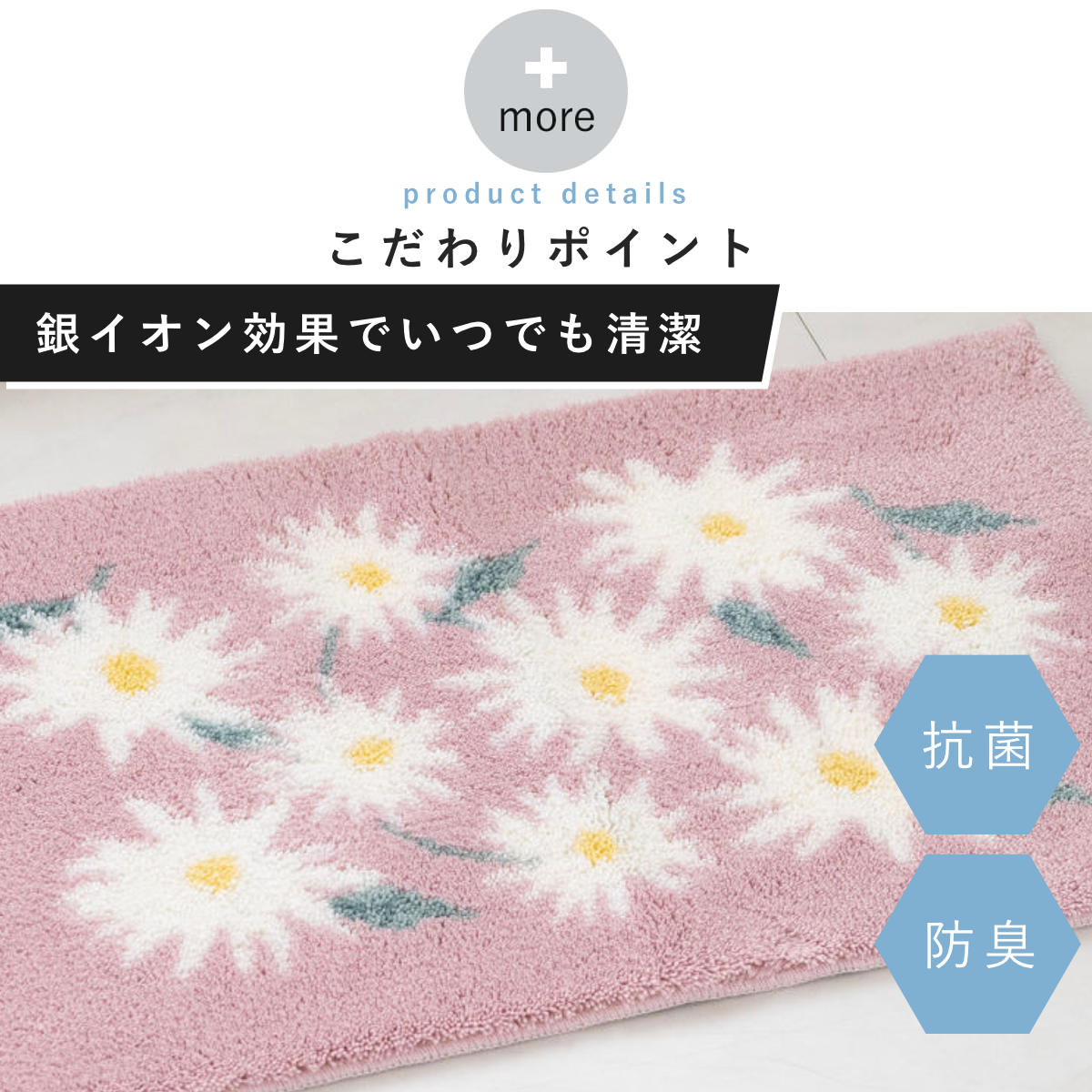 洗っても効果が続く抗菌防臭加工付きで、マット上の菌の増殖を抑制するので、いつまでも衛生的にお使いいただけます。