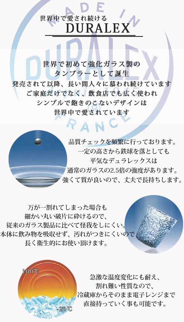 一定の高さから鉄球を落としても平気なデュラレックスは通常のガラスの2.5倍の強度があります。強くて質が良いので、丈夫で長持ちします。