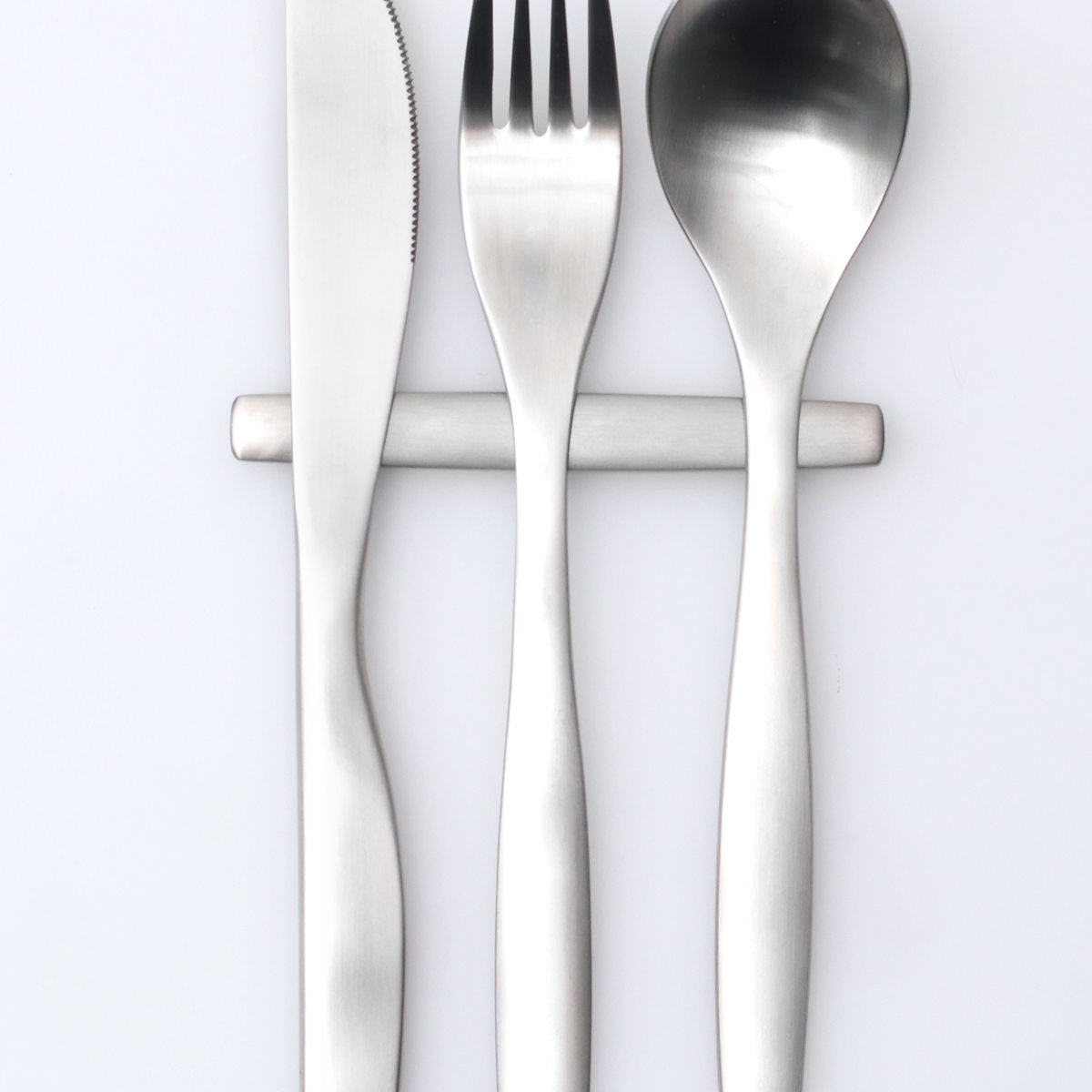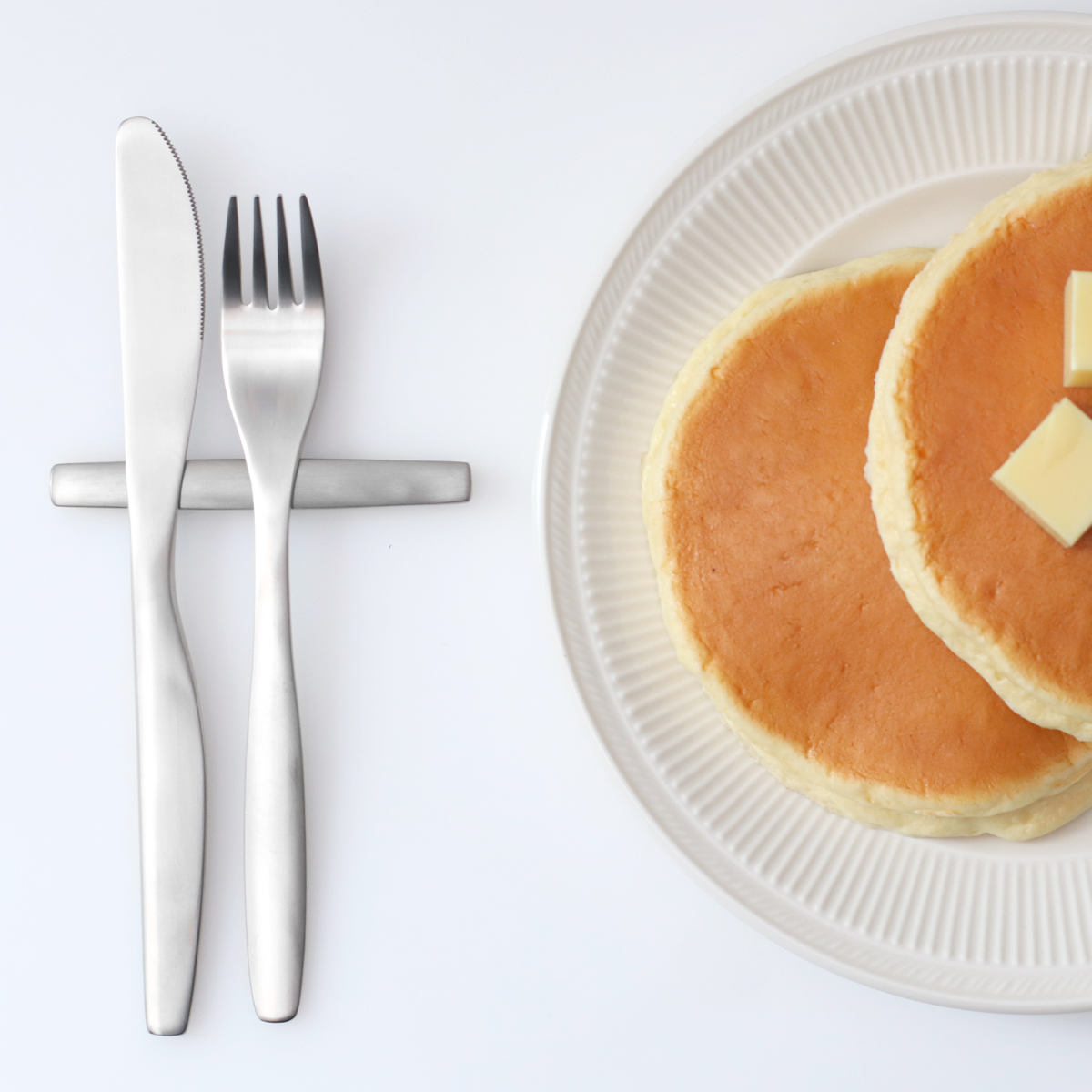 「手に取った瞬間、使った時に満ち足りた感覚になるような、感覚にうったえかけるようなもの」をコンセプトに作られたカトラリーレストです。和食、洋食、アジア料理など多様なテーブルシーンに馴染むシンプルなデザインです。