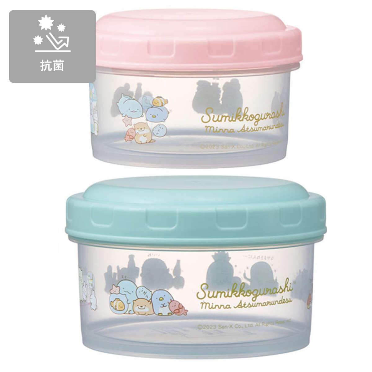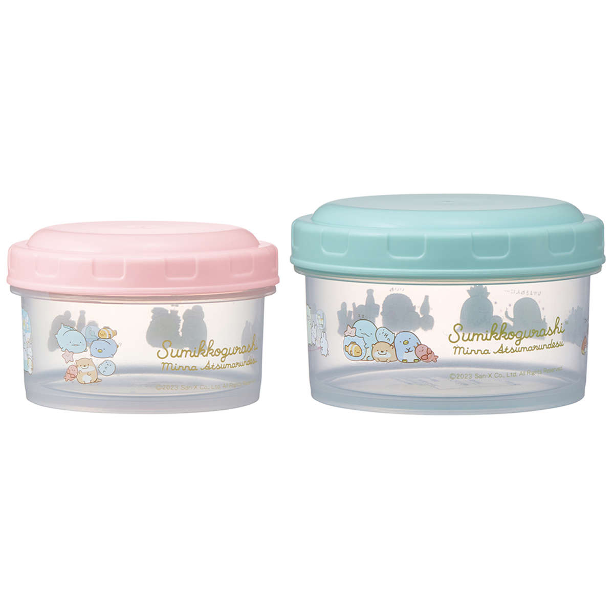 フルーツやおかずなどの食品はもちろん、小さなおもちゃや小物の収納にもぴったりな保存容器2個セットです。いつものすみっコたちに加え、久しぶりのすみっコたちも加わった様子も可愛く、使うたびに気分が上がります。