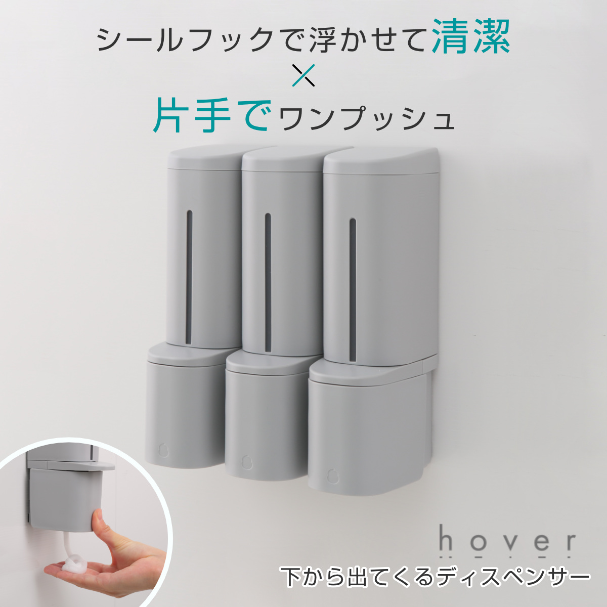 壁に取り付けて使える「ホバーシリーズ」です。中身に合わせて、リキッド・泡・ミストの3タイプから選べます。泡タイプはハンドソープなどの泡ソープに、ミストタイプはアルコールにも対応しています。浴室や洗面所など様々なシーンで活躍し、ライフスタイルに合わせてお使いいただけます。