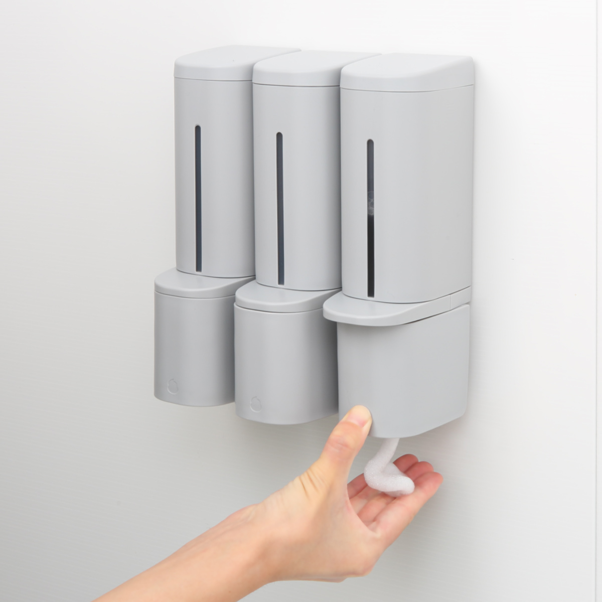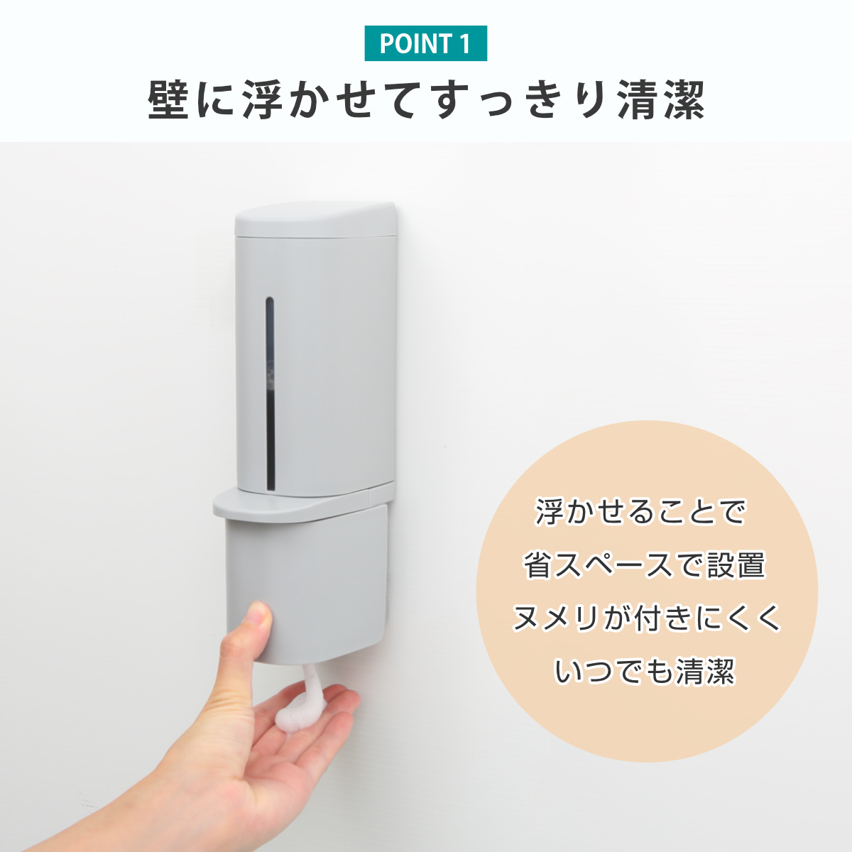 壁に取り付けるだけで、カウンターや床がすっきり片付くディスペンサーです。浮かせる設置で水濡れやヌメリを防ぎ、いつでも清潔に保てるので、浴室や洗面所で安心して使えます。下から液体が出てくる構造のため、中身を最後まで無駄なく使用できます。補充の頻度も減り、経済的に使える設計です。