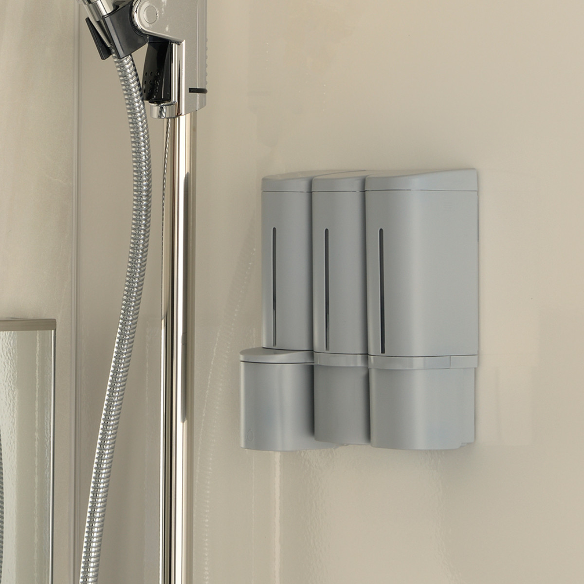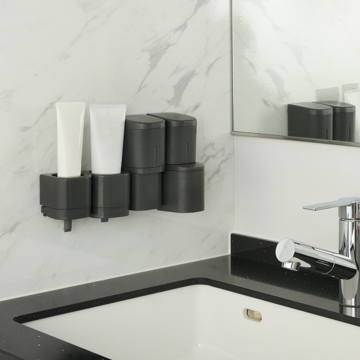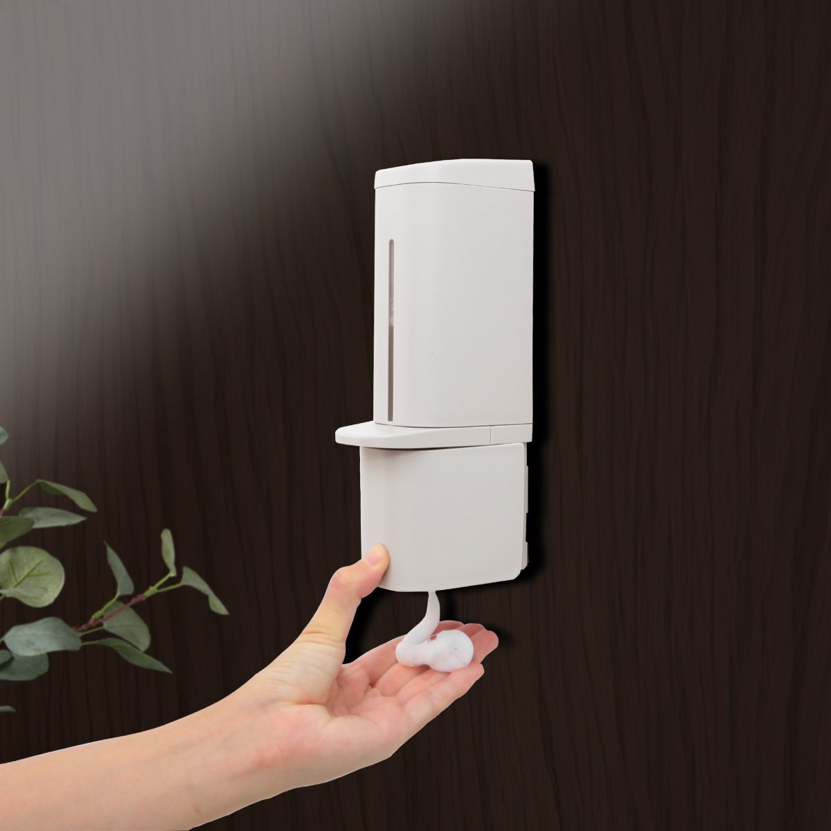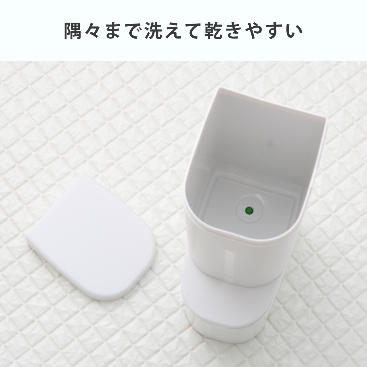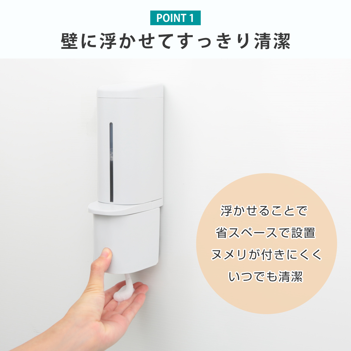 壁に取り付けるだけで、カウンターや床がすっきり片付くディスペンサーです。浮かせる設置で水濡れやヌメリを防ぎ、いつでも清潔に保てるので、浴室や洗面所で安心して使えます。下から液体が出てくる構造のため、中身を最後まで無駄なく使用できます。補充の頻度も減り、経済的に使える設計です。