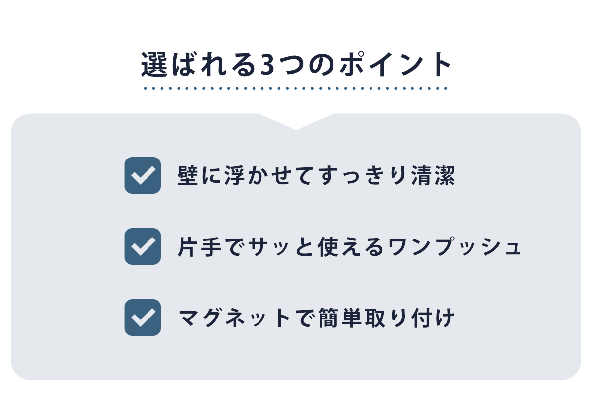 背面にマグネットが付いているので、磁石が付くユニットバスならどこにでも自由に設置できます。掃除や模様替えのときも簡単に取り外せるので、毎日のバスタイムをストレスフリーにサポートします。