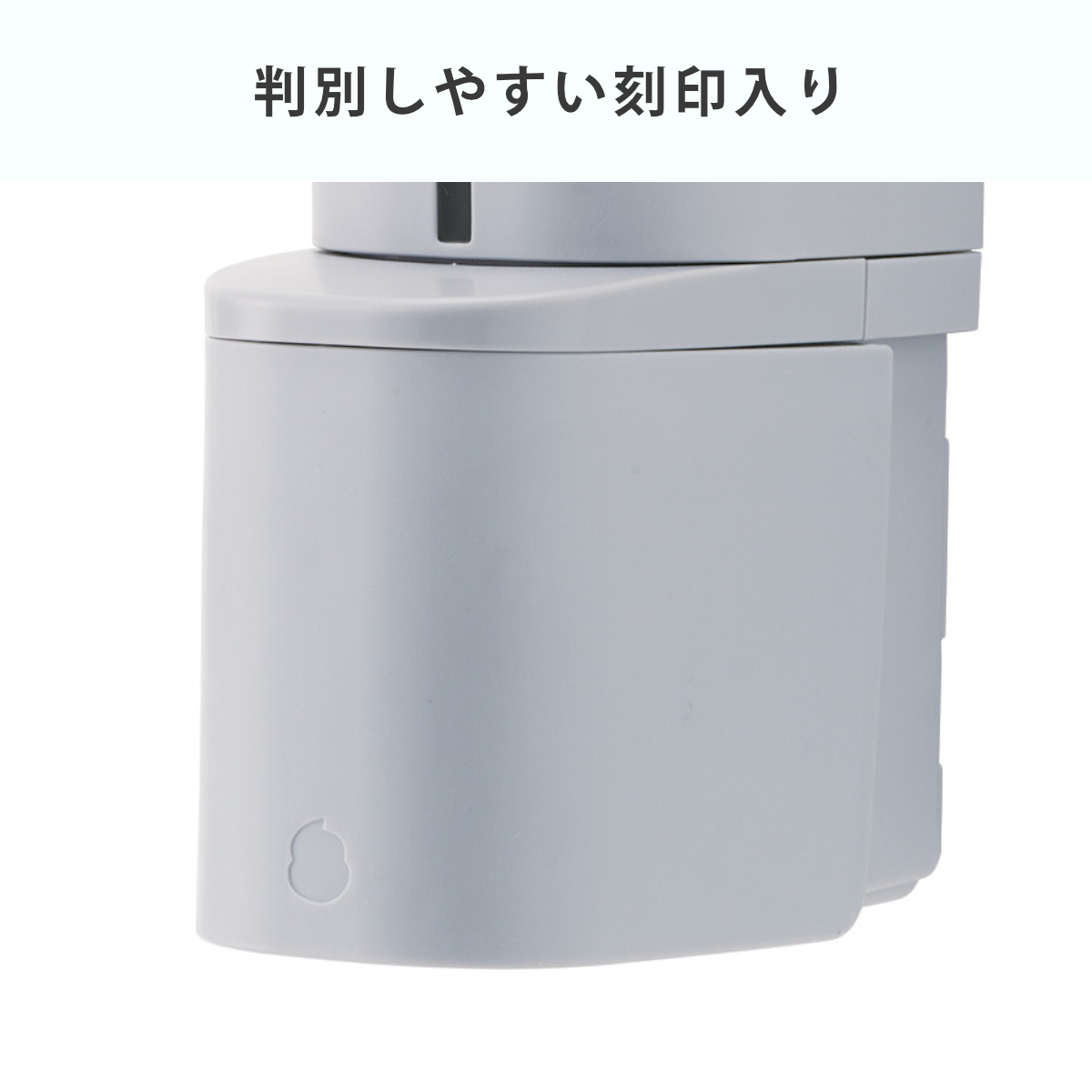 プッシュ部分には泡のマークの刻印があり、一目で識別できます。文字表示ではないため、お子さまも迷わず使えます。