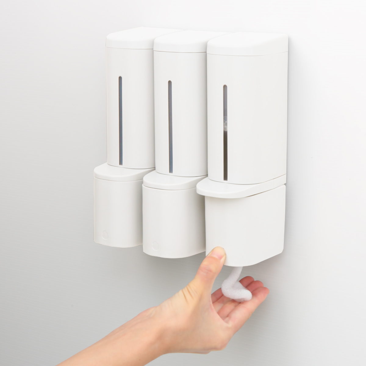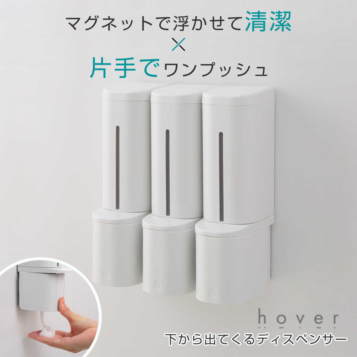 壁に取り付けて使える「ホバーシリーズ」です。中身に合わせて、リキッド・泡・ミストの3タイプから選べます。泡タイプはハンドソープなどの泡ソープに、ミストタイプはアルコールにも対応しています。浴室や洗面所など様々なシーンで活躍し、ライフスタイルに合わせてお使いいただけます。