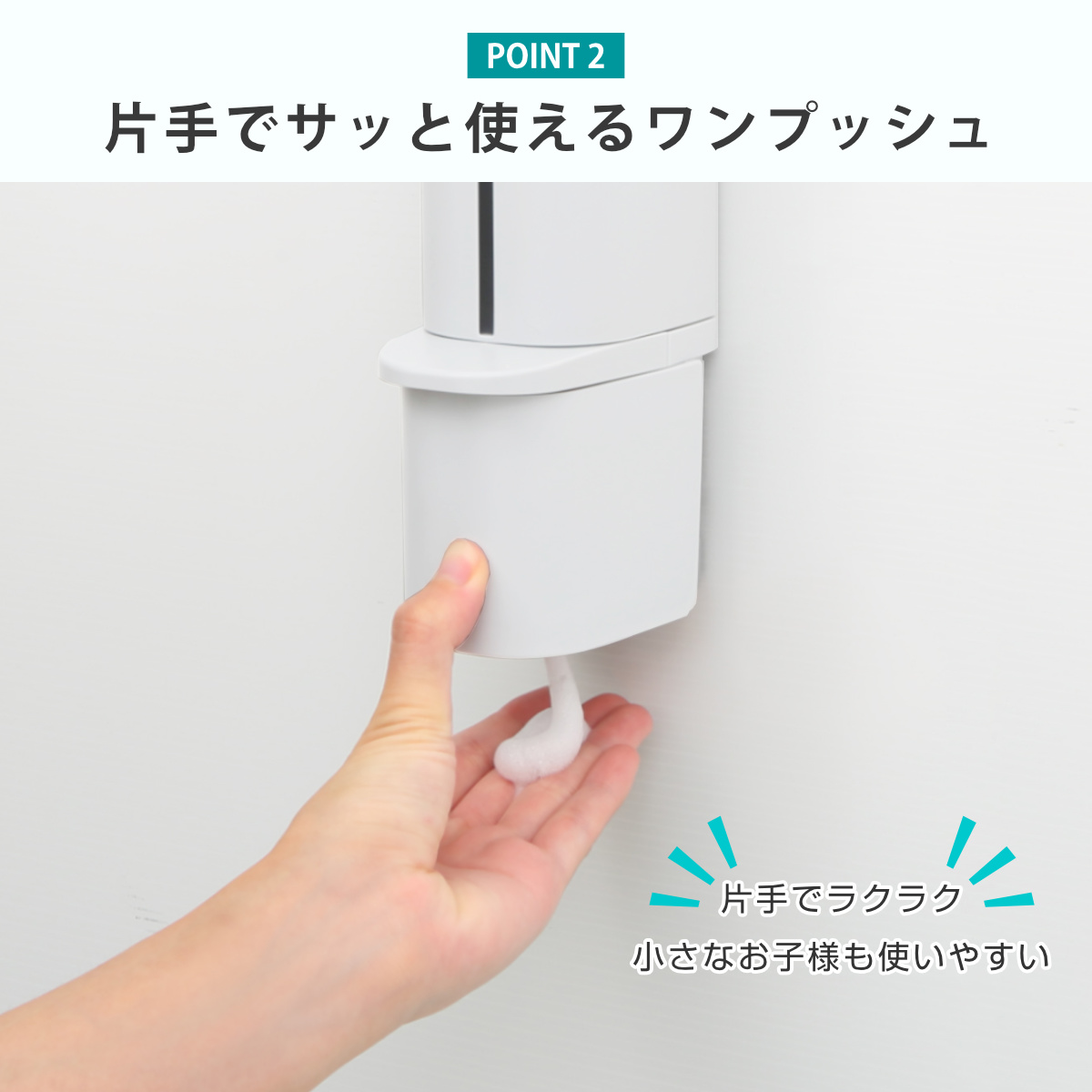 片手でワンプッシュするだけで中身が出てくるので、手がふさがっているときでも簡単に使え、シャンプーやハンドソープなど毎日のバス・洗面習慣を快適にサポートします。浴室や洗面所での操作性を考え、使いやすさにこだわったデザインです。