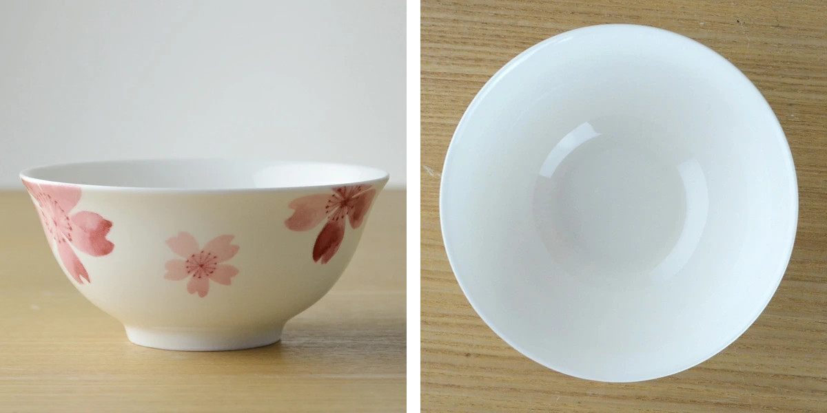 温かみのある乳白色と滑らかな質感、美しい透過性が特徴の最高級磁器「ボーンチャイナ製」。水彩調の淡い落ち着いた桜のデザインで幅広い世代の方に好まれます。程よい丸みのあるフォルムは手にしっくりとなじみます。
