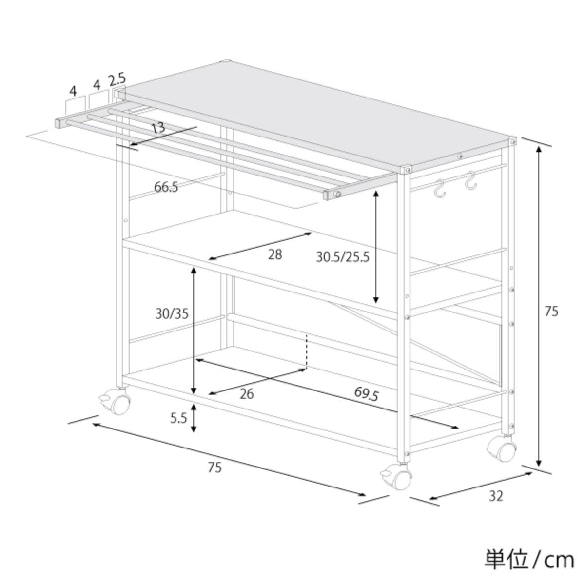 - 約幅75×奥行32×高さ75cm